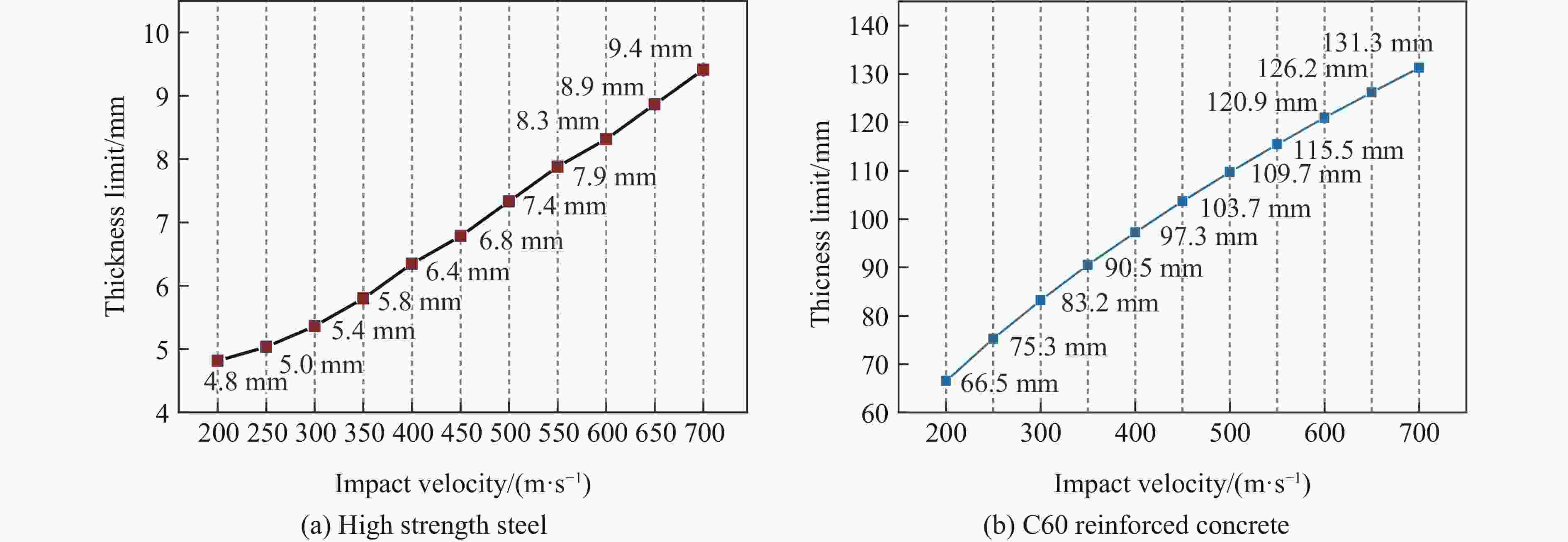 Calculation model for the thickness limit of high-strength steel-concrete composite structures under the impact of slender thin-walled projectiles