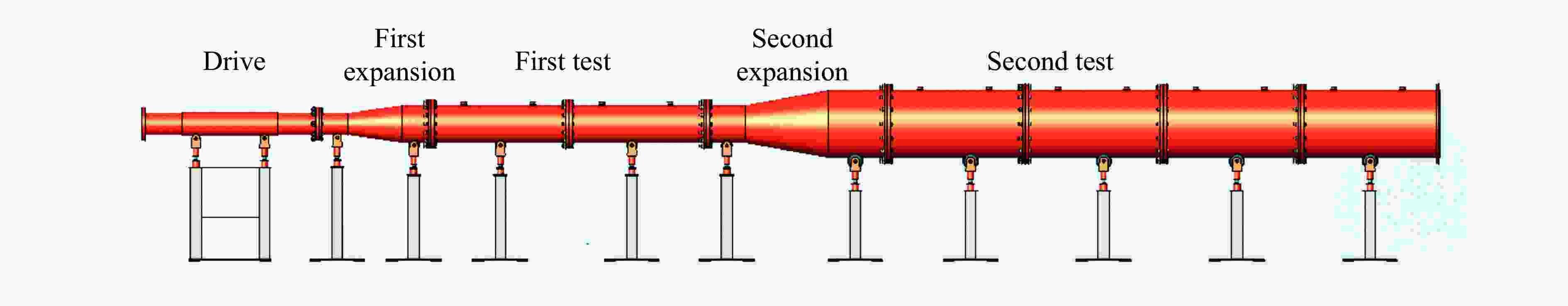 双夹模结构研究爆炸冲击波对生物造成的原发性损伤 3马赫激波管 [85] 中国科学技术大学空天飞行高温气动全国重点实验室 驱动段总长13.16 m, 高压气体驱动,