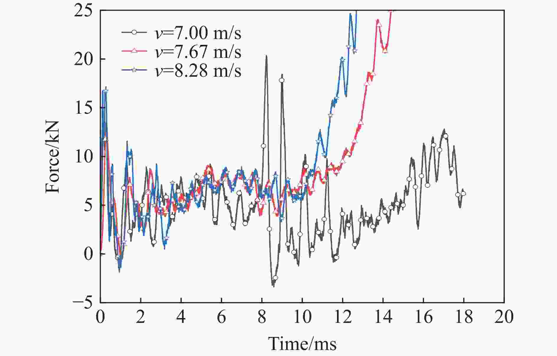 Figure  8.  Dynamic response curves of enhanced X-shaped lattice mechanical metamaterial subjected to low-velocity impact (v=7.00 m/s)