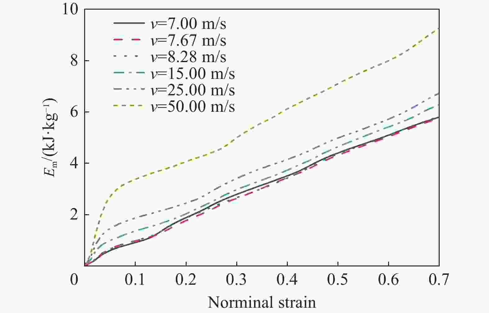 图  19  不同冲击速度下米字形点阵力学超材料的比能量吸收曲线对比