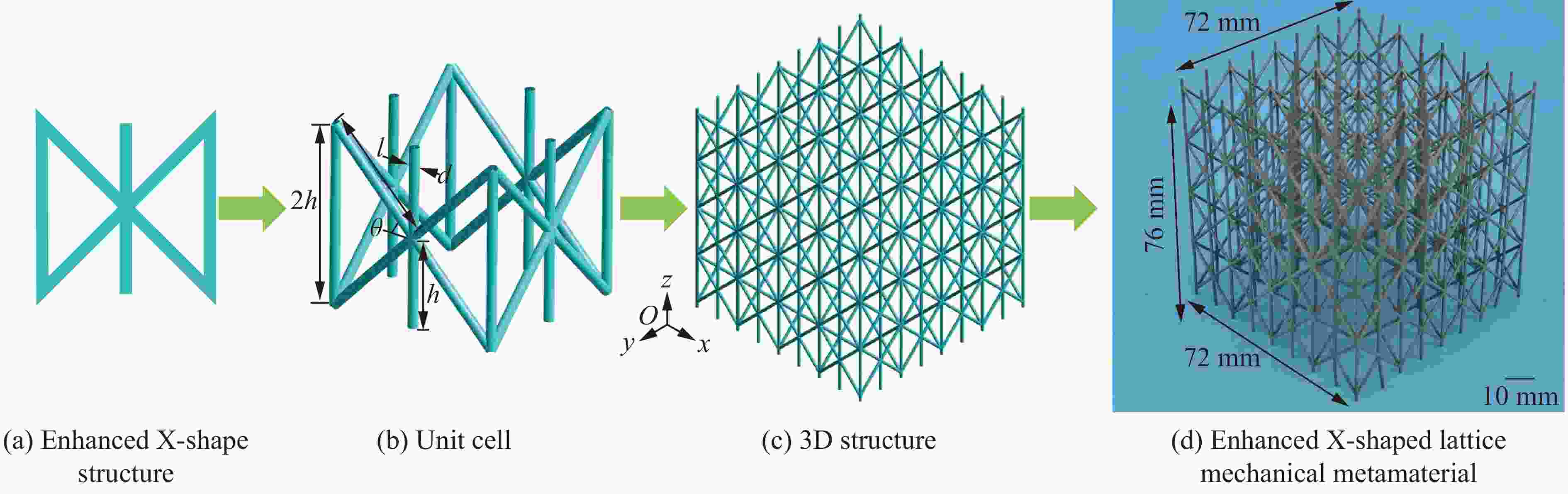 Figure  1.  Design and specimen of enhanced X-shaped lattice mechanical metamaterial