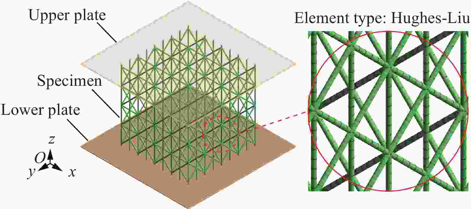 图  5  米字形点阵力学超材料的面外准静态压缩有限元模型