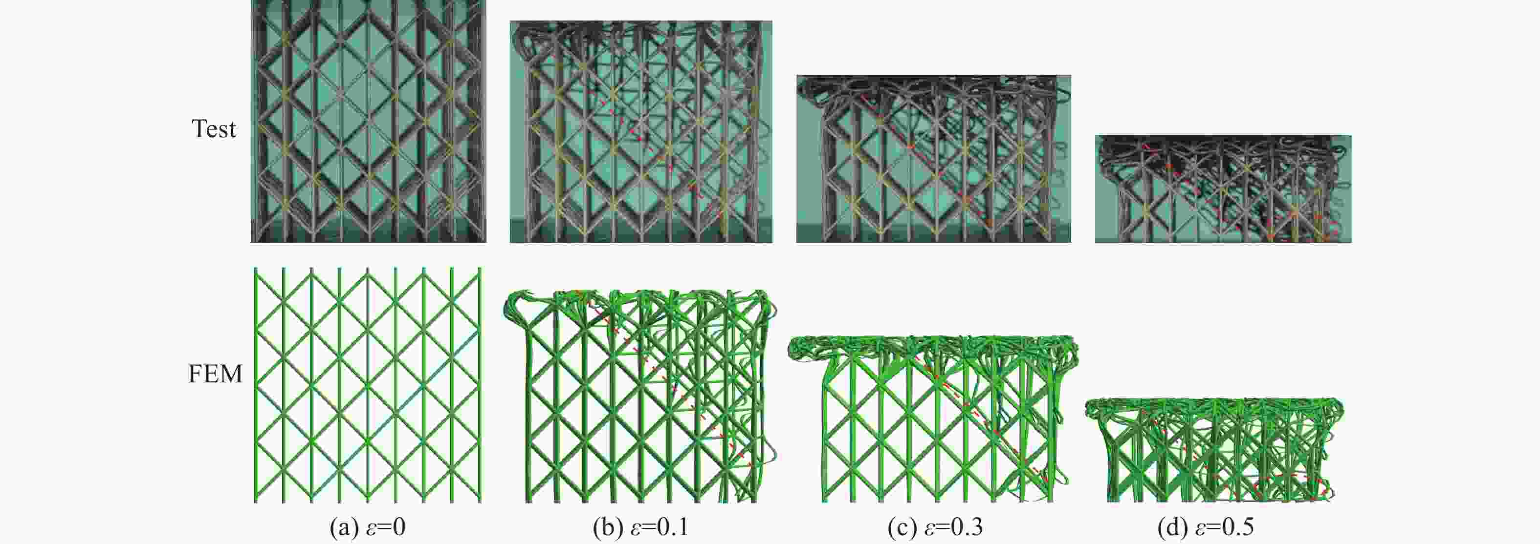 Figure  3.  Out-of-plane quasi-static compression test of enhanced X-shaped lattice mechanical metamaterial