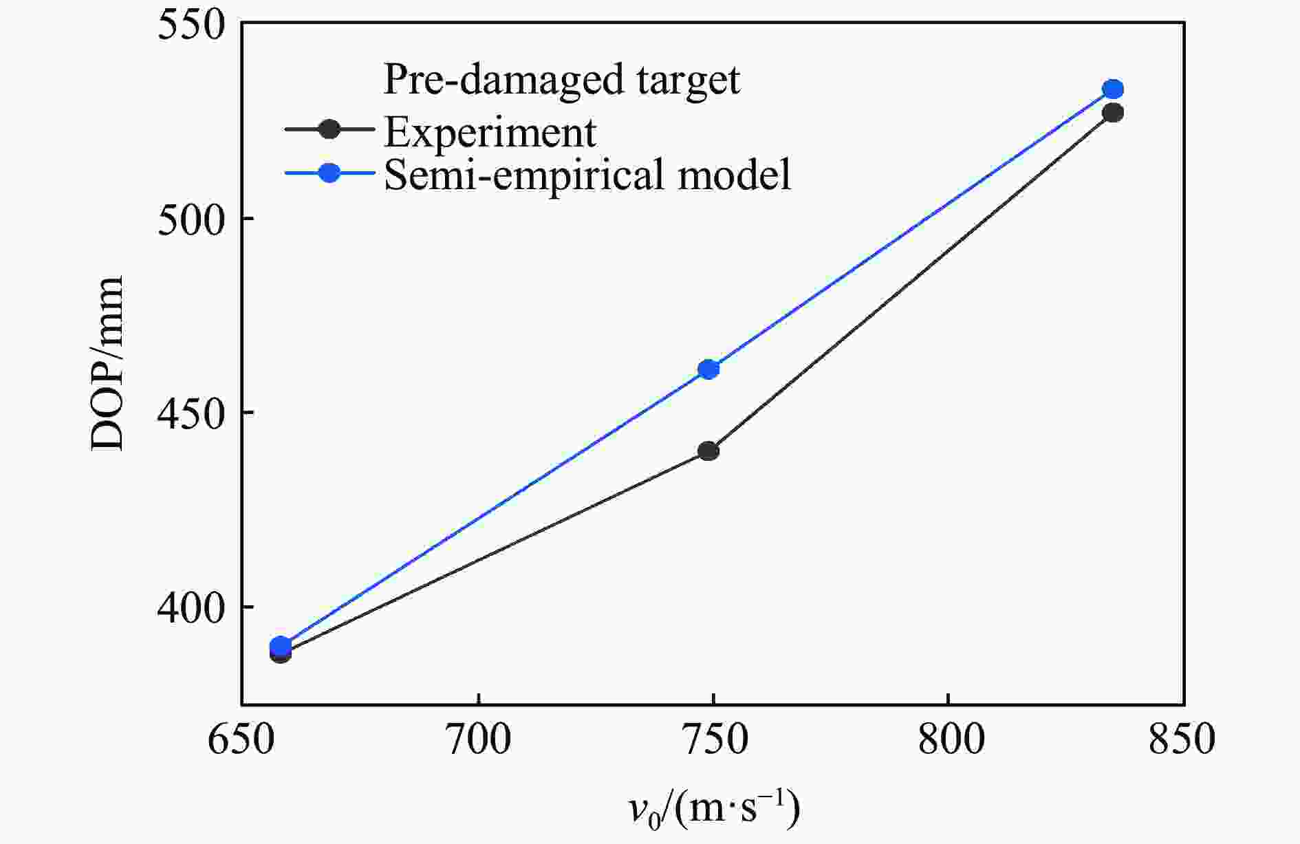 靶体编号 v0/(m·s−1) d/mm h1/mm DOP/mm 开坑容积/L 1# 834 580 100 476 10.56 2# 726 463 93 379 5.11 9# 658 418 87 372 2.42 表 4 混凝土靶体侵彻深度对比