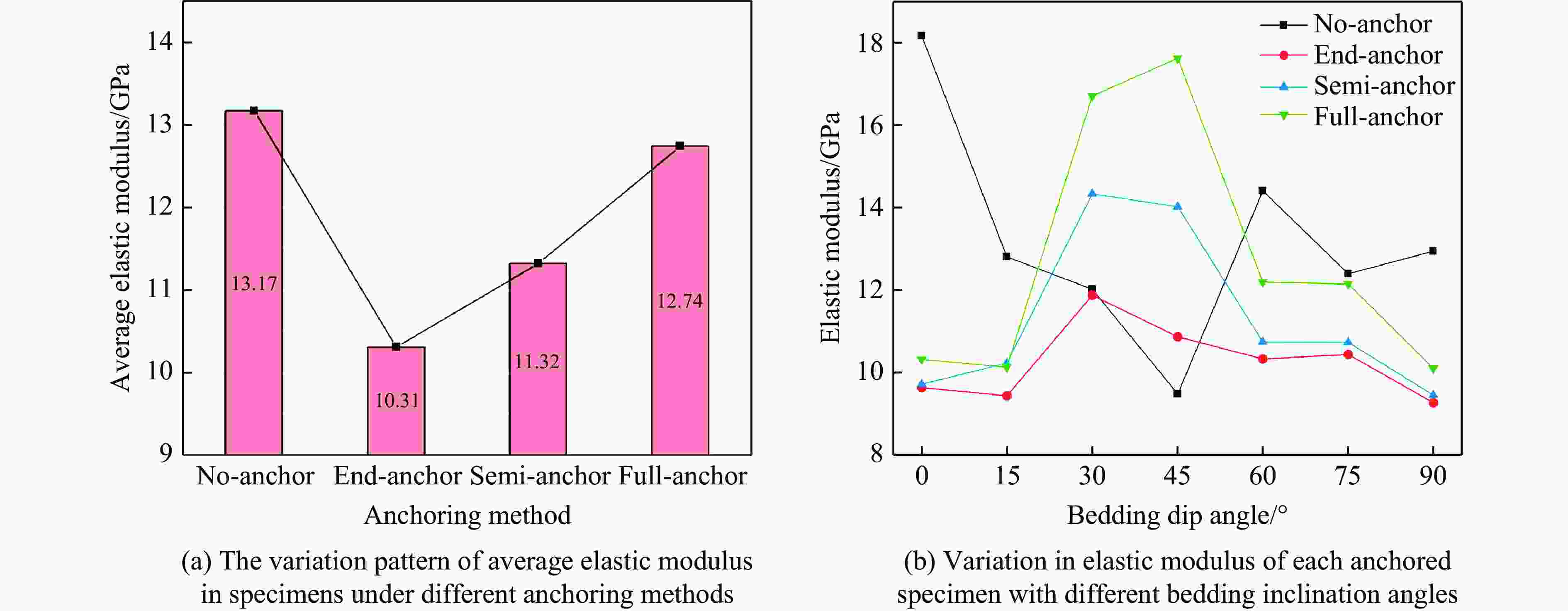 Experimental study on dynamic mechanical properties of sandstone under coupled effects of bedding dip angle and anchoring methods