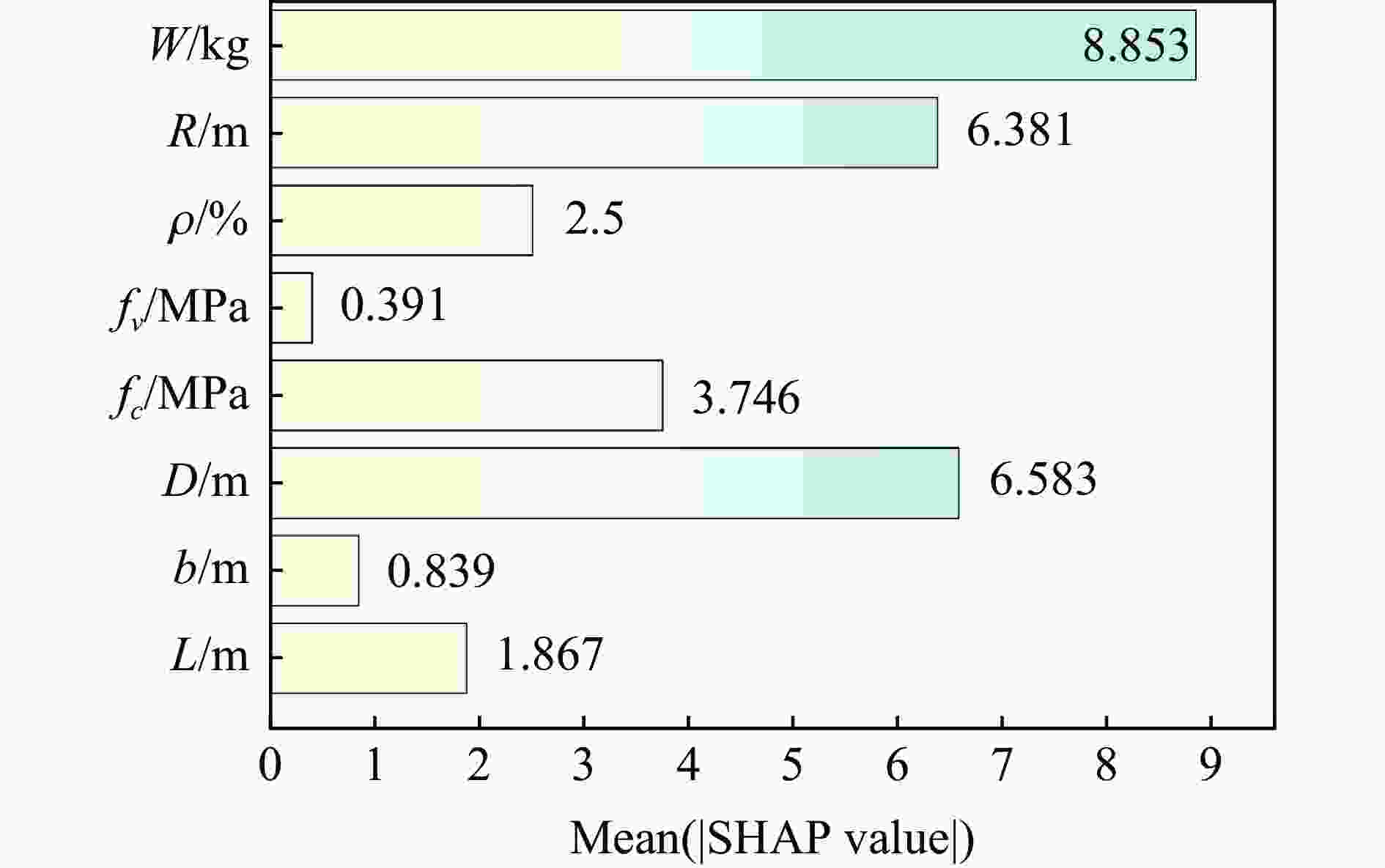 数据 l/m b/m D/m fc/MPa fv/MPa ρ/% R/m W/kg d/mm 平均值 2.320 1.577 0.158 40.025 417.179 0.474 1.019 3.064 21.126 范围 1.3~4 1~3.1 0.07~0.3 20~80 235~600 0.15~1.77 0.01~2.1 0.05~10 0.44~137 表 3 损伤程度预测数据集参数范围