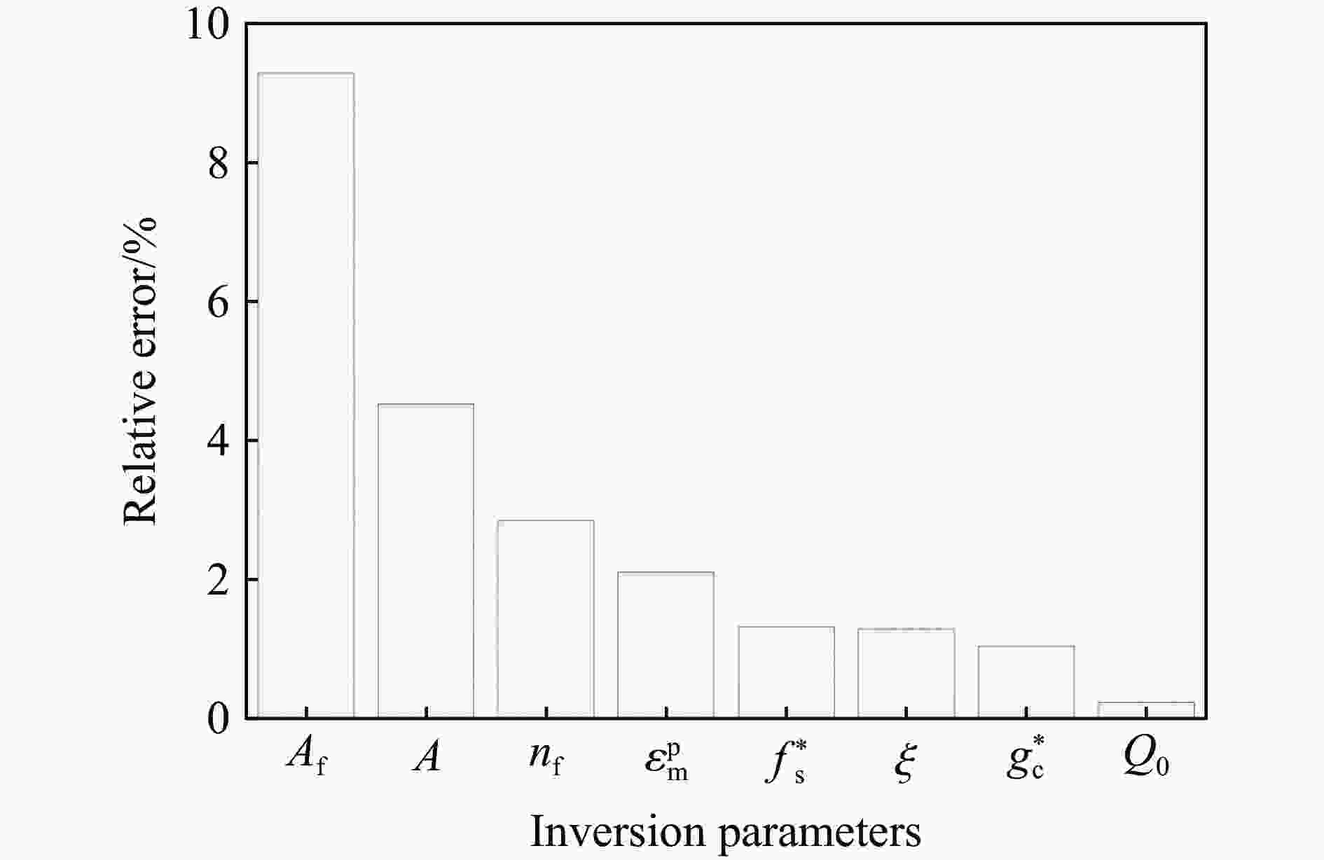 反演参数 Q0 $ f_{\text{s}}^{\text{*}} $ $ g_{\text{c}}^{\text{*}} $ $ \xi $ A $ \varepsilon _{\text{m}}^{\text{p}} $ Af nf 上限 1.10 0.55 0.85 0.2 3.0 0.016 2.1 1.68 初始值 0.685 0.346 0.53 0.5 2.32 0.01 1.31 1.05 下限 0.27 0.14 0.21 0.8 0.91 0.004 0.524 0.42 表 5 不同类型测试函数