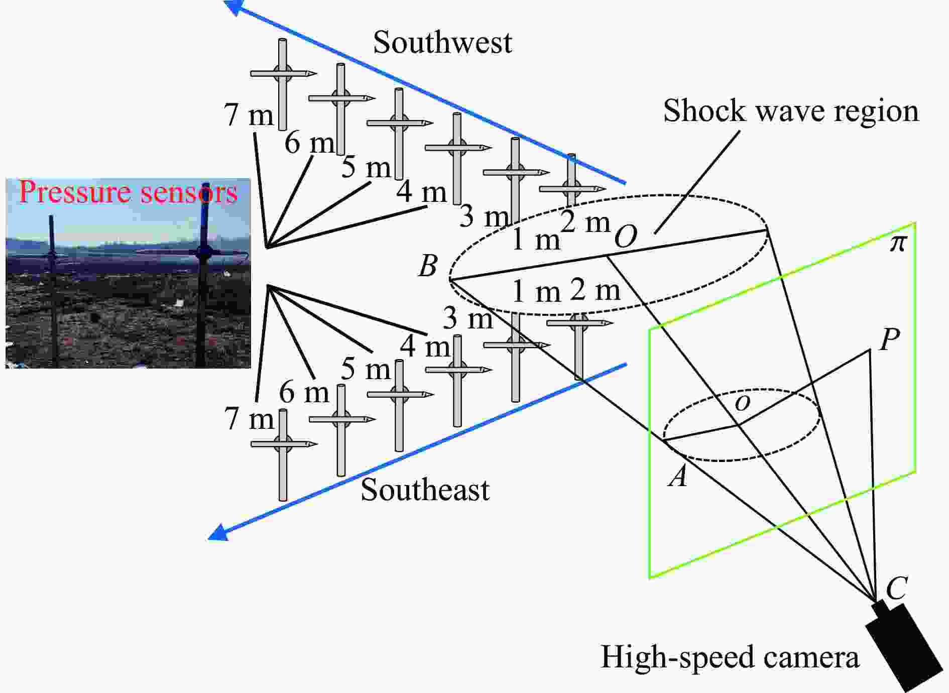 摘要: 背景纹影(background-oriented schlieren,BOS)技术因其非接触与高时空分辨率的优势,已成为爆炸力学外场试验的重要测量手段,但受强光干扰、产物散射及冲击波信号微弱且形态复杂等因素影响,BOS图像中波阵面的自动精确提取十分困难。为此,提出了一种结构感知加权变分光流方法(structure-aware weighted variational optical flow,SAW-VF),用于对冲击波的高速瞬态位移场进行鲁棒量化,其核心是最小化一个针对性构建的能量泛函:首先,在数据保真项中融合一阶光度与二阶Hessian矩阵不变性约束,从而显著增强对冲击波线状局部几何特征的敏感性;其次,引入由归一化互相关(normalized cross-correlation,NCC)驱动的空间自适应加权机制,能够动态抑制严重畸变区域对估计结果的负面影响;然后,采用受佩罗娜-马利克(perona-malik)扩散启发的各向异性正则项,以有效保护冲击波锋锐的运动边界。为了以应对大位移运动,整个优化过程嵌入由粗至精的高斯金字塔框架中。在此基础上,进一步构建了物理模型驱动的波阵面拟合方法,通过最大内点集优化与冲击波动力学约束精确提取波阵面。最终,通过基于几何标定与时间序列估计冲击波半径及传播速度,结合兰金-雨贡纽(rankine-hugoniot)理论实现非接触式超压定量测量。在TNT爆炸试验中,该方法测量结果与压力传感器数据的相对误差为0.93%~9.85%,验证了其在冲击波非侵入式超压测量中的有效性与准确性。Abstract: Background-oriented schlieren (BOS) imaging, owing to its non-contact nature and high spatiotemporal resolution, has become an important measurement technique in field experiments of explosion mechanics. However, due to strong illumination interference, scattering from detonation products, and the inherently weak and morphologically complex shockwave signature, automatic and accurate extraction of the shock front from BOS images remains highly challenging. To address this issue, we propose a structure-aware weighted variational optical flow method (SAW-VF) for robust quantification of the high-speed transient displacement field of shockwaves. The proposed approach minimizes a purpose-designed energy functional. Specifically, the data fidelity term combines a first-order photometric constraint with a second-order Hessian-invariance constraint, substantially enhancing sensitivity to the local line-like geometric features of shock fronts. In addition, a spatially adaptive weighting mechanism driven by normalized cross-correlation (NCC) is introduced to dynamically suppress the adverse influence of severely distorted regions on the estimation. Moreover, an anisotropic regularization term inspired by Perona-Malik diffusion is employed to effectively preserve the sharp motion boundaries of the shock front. To cope with large displacements, the optimization is embedded in a coarse-to-fine Gaussian pyramid framework. Building upon the estimated displacement field, we further develop a physics model–driven shock-front fitting method, in which the shock front is accurately extracted via maximum-inlier-set optimization coupled with shockwave dynamical constraints. Finally, the shock radius and propagation velocity are estimated using geometric calibration and temporal information, and the overpressure is quantitatively determined in a non-contact manner based on the Rankine-Hugoniot theory. In TNT explosion experiments, the proposed method achieves a relative error of 0.93%—9.85% with respect to pressure sensor measurements, demonstrating its effectiveness and accuracy for non-intrusive overpressure measurement of shockwaves.
