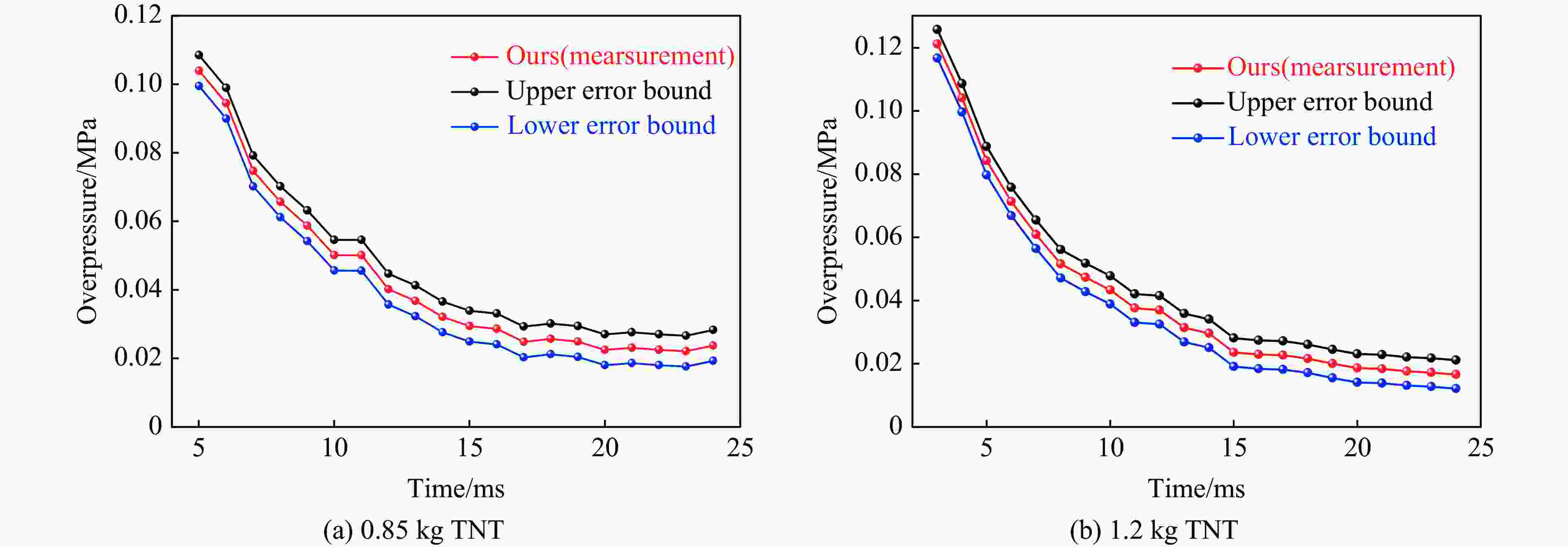 距离/m 压力传感器测量值/MPa 经验公式预测值/MPa 本文方法测量值/MPa 相对误差/% 3 0.1190 0.0895 0.1087 8.68 (PSV)