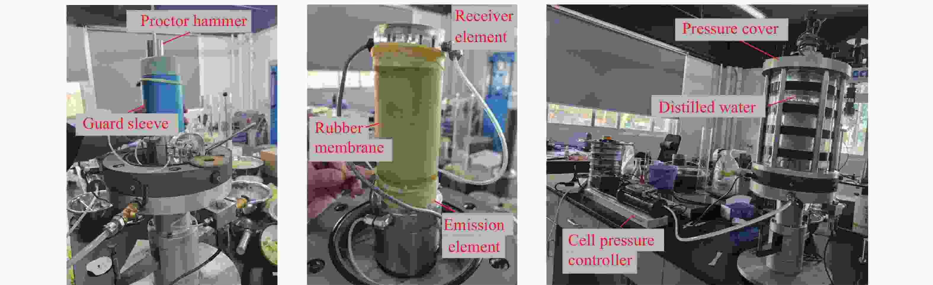 摘要: 超重力离心模型试验是模拟原型爆炸效应的有效手段,其成功应用依赖于能够复现原状土动力响应的相似土样。针对砂砾土爆炸离心模拟中存在的粒径效应和材料相似性难题,建立了一套系统的相似土样配制与验证方法。通过理论分析,将影响爆炸地冲击效应的关键土性参数聚焦于密度和波速(波阻抗),而控制这些参数的核心是土体的级配特征。采用剔除法、等量替代法、相似级配法和混合法4种缩尺方法制备了12种不同最大粒径的相似土样,通过孔隙比试验和有效围压下的弯曲元测试,揭示了砂砾土极孔隙比与细粒含量、平均粒径的量化关系,进而建立了小应变弹性模量的经验预测模型。通过对比模型预测的波速与原位实测数据,结果表明:不均匀系数、细粒含量和平均粒径是实现砂砾土爆炸动力相似的关键控制指标;采用等量替代法配制的最大粒径为10 mm的相似土样,在上述指标上与原状土最等效。基于此相似土样的超重力离心爆炸试验进一步证实,爆源平面内的归一化峰值加速度衰减规律与原位数据高度一致。通过控制关键级配指标并采用等量替代法,可成功配制出在爆炸动力响应上与原状砂砾土等效的相似材料,从而为相关领域的离心机模型试验提供切实可行的技术途径。Abstract: Hypergravity centrifuge model testing serves as an effective method for simulating prototype explosion effects, whose successful application relies on soil simulants capable of replicating the dynamic response of in-situ soil. To address the challenges of particle size effects and material similarity in centrifuge modeling of explosions in sandy gravel, this study aims to establish a systematic methodology for the preparation and validation of such simulants. Through theoretical analysis, the soil key parameters governing ground shock effects under explosions were identified as density and wave velocity (wave impedance), which are fundamentally controlled by the soil’s gradation characteristics. Based on this premise, twelve types of simulants with varying maximum particle sizes were systematically prepared using four scaling methods: the removal method, equal quantity replacement method, similar gradation method, and hybrid method. Through void ratio tests and bender element testing under effective confining pressure, quantitative relationships were revealed between the extreme void ratios of sandy gravel and its fines content and mean particle size. Based on this, an empirical predictive model for the small strain elastic modulus was established. Comparison of the model-predicted wave velocities with in-situ measured data indicates that the coefficient of uniformity, fines content, and mean particle size are the key controlling indices for achieving dynamic similarity in sandy gravel under explosion loading. Among these, the simulant prepared by the equal quantity replacement method, with a maximum particle size of 10 mm, demonstrated the closest equivalence to the in-situ soil in terms of the aforementioned indices. Hypergravity centrifuge explosion tests using this equivalent simulant further verified that the attenuation law of normalized peak accelerations within the source plane corresponds highly consistently with the in-situ data. This research confirms that by controlling key gradation indices and employing the equal quantity replacement method, it is possible to successfully prepare simulants that are equivalent to in-situ sandy gravel in their dynamic response to explosions. This provides a practical and effective technical pathway for centrifuge model testing in related fields.