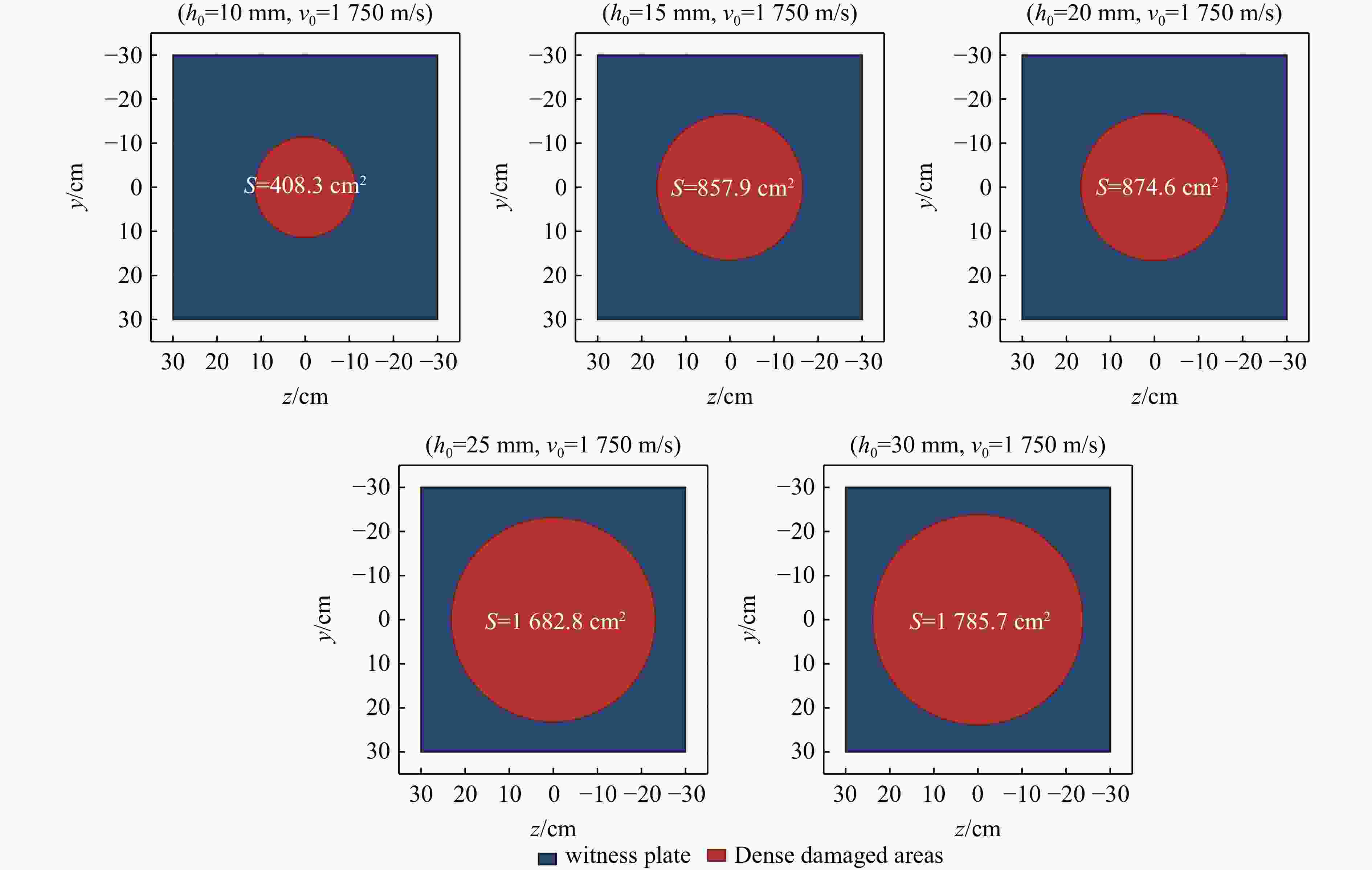 Table 4. Comparison of numerical simulation and experimental results of the morphological feature sizes of the behind-armor debris clouds