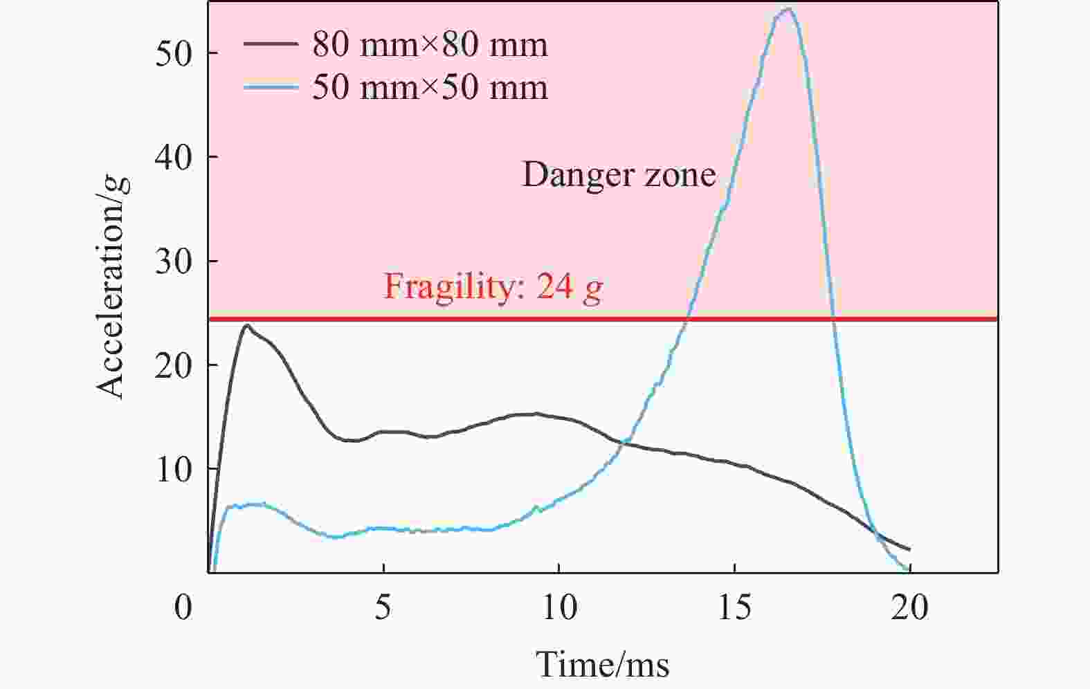落锤质量/kg 静应力/kPa 最大加速度/g 单层纸蜂窝 双层纸蜂窝 三层纸蜂窝 单层纸蜂窝 双层纸蜂窝 三层纸蜂窝 6.92 6.78 6.78 6.78 51.2 59.6 71.0 10.68 10.47 10.47 10.47 43.9 54.4 55.8 15.68 15.37 15.37 15.37 30.0 31.7 37.5 20.72 20.30 20.30 20.30 58.3 26.0 18.3 23.80 23.30 23.30 23.30 25.3 16.0 -