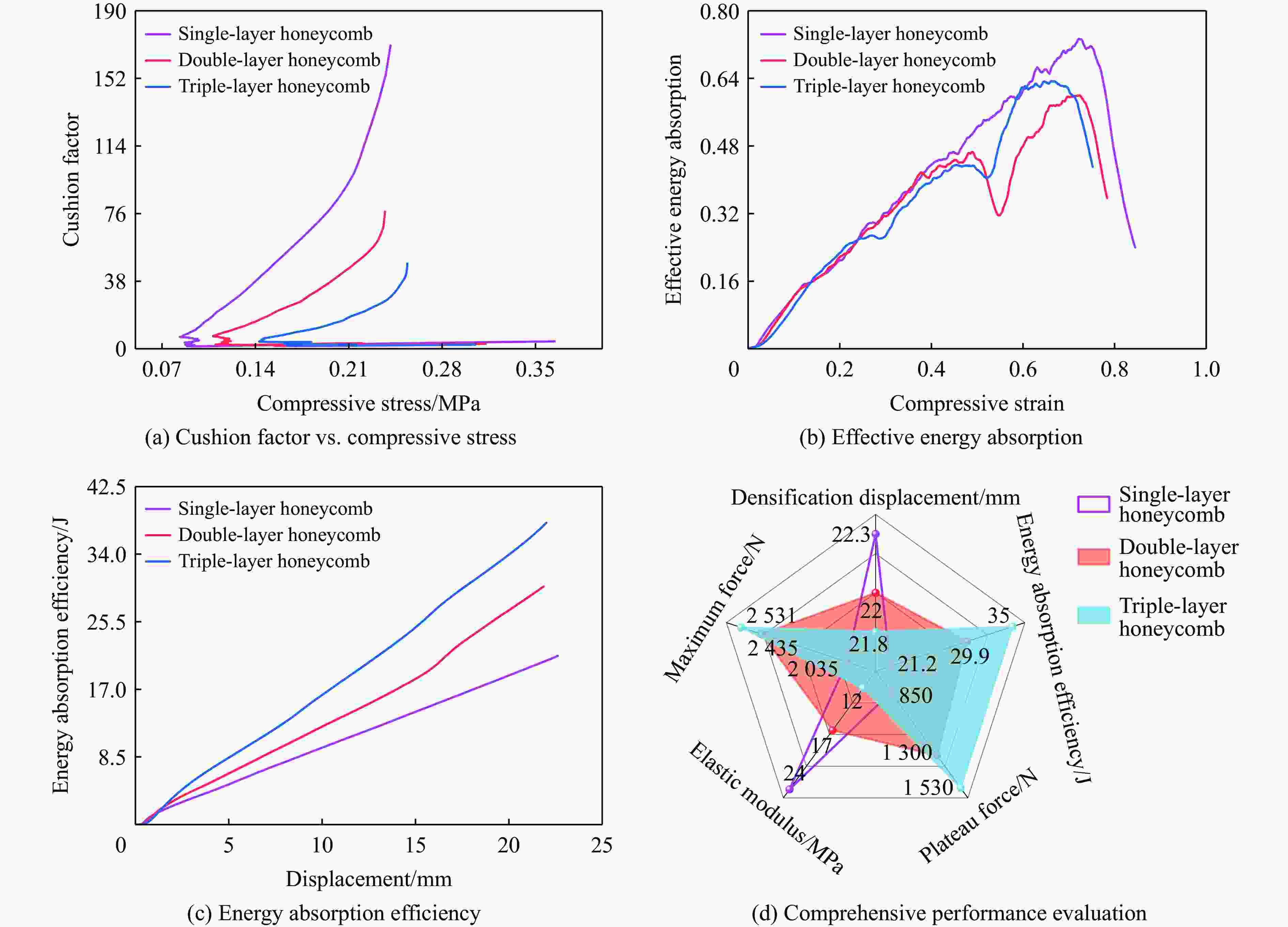 Study on the impact energy absorption mechanism and packaging cushioning application of multilayer paper honeycomb structure