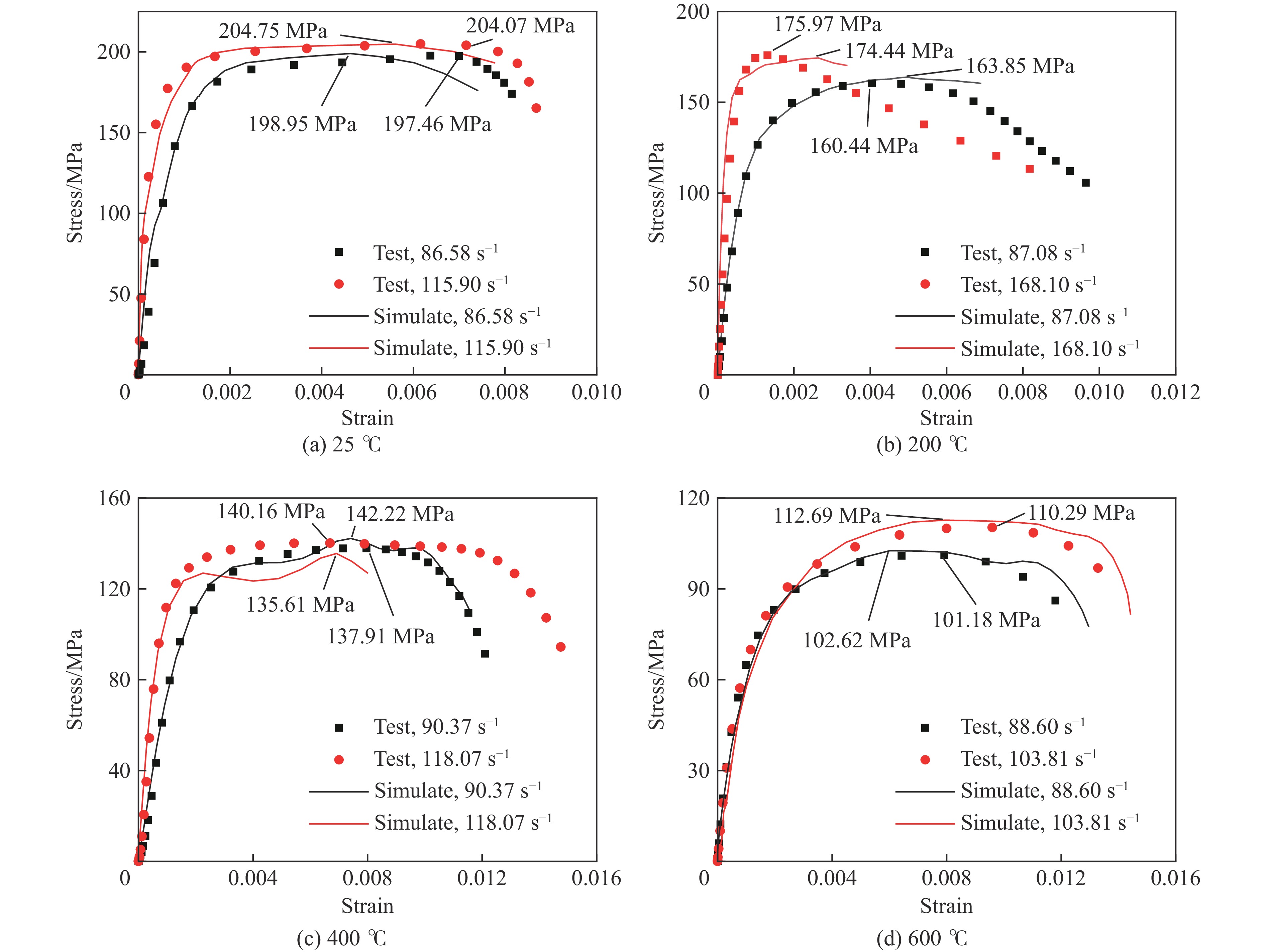 为研究超高性能混凝土(ultra-high performance concrete, UHPC)在高温-爆炸冲击耦合作用下的动态力学特性,采用高温分离式霍普金森压杆(split Hopkinson pressure bar, SHPB)实验系统,开展了25~600 ℃温度及90~200 s−1应变率范围内C140 UHPC单轴压缩实验,系统分析了高温与冲击耦合作用下材料的强度、应变、韧性、应力-应变关系及破坏形态,揭示了温度与应变率效应对其动态力学性能的影响规律,并基于温度效应修正了Holmquist-Johnson-Cook(HJC)本构模型屈服面。结果表明:UHPC在高温动态压缩下表现出显著的应变率强化效应,但高温同时劣化其力学性能;材料应变能力与韧性演化规律源于温度效应与应变率效应的协同作用;在相同温度下,提高应变率可加剧UHPC的破坏程度。当温度超过400 ℃时,UHPC基体劣化及钢纤维氧化致使材料整体呈现脆性破坏特征,然而其局部芯部仍保持完整并具有显著残余承载能力;修正后的HJC屈服面适用于该类材料在高温与冲击耦合作用下的动态力学性能研究。