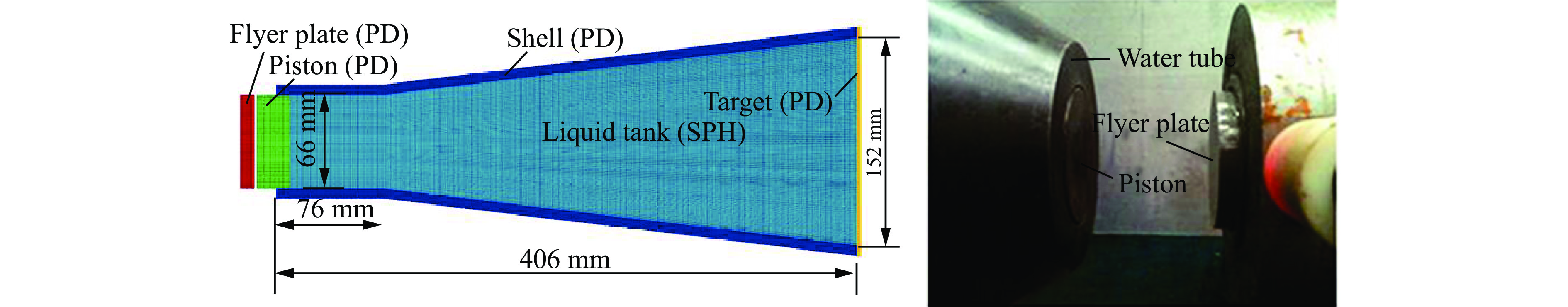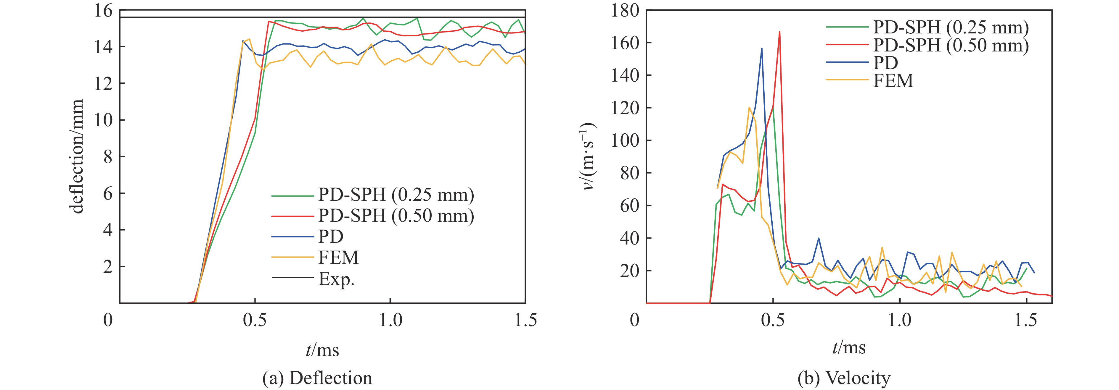 鉴于舰艇抗爆炸冲击性能评估面临强非线性流固耦合、结构大变形及损伤破坏演化等关键力学问题挑战,通过耦合近场动力学(peridynamics, PD)和光滑粒子流体动力学(smoothed particle hydrodynamics, SPH)的各自优势,构建适用于水下爆炸冲击模拟的高效PD-SPH数值模型。采用SPH模拟水下冲击波传播及其流固耦合效应,通过PD方法精确表征固体结构从弹性变形至渐进损伤破坏的全过程力学行为,建立非药式水下爆炸冲击波加载装置的PD-SPH数值模型。针对大规模粒子计算效率瓶颈,开发基于区域分解与数据通信机制的多GPU (graphics processing unit)并行计算框架。系统验证和并行效率测试表明,该方法可准确预测冲击波壁面压力和靶体动态变形,成功复现薄板结构的典型裂纹扩展模式,并可用于开展复杂夹层板毁伤全过程模拟。在超过500万个粒子的复杂流固耦合场景中,8卡RTX4090相比单卡RTX4090加速比为4.13,并行效率为51.6%,实际计算时间可以压缩到近1 h。同时,多GPU并行与传统CPU (central processing unit)并行相比,加速比可达9倍以上。