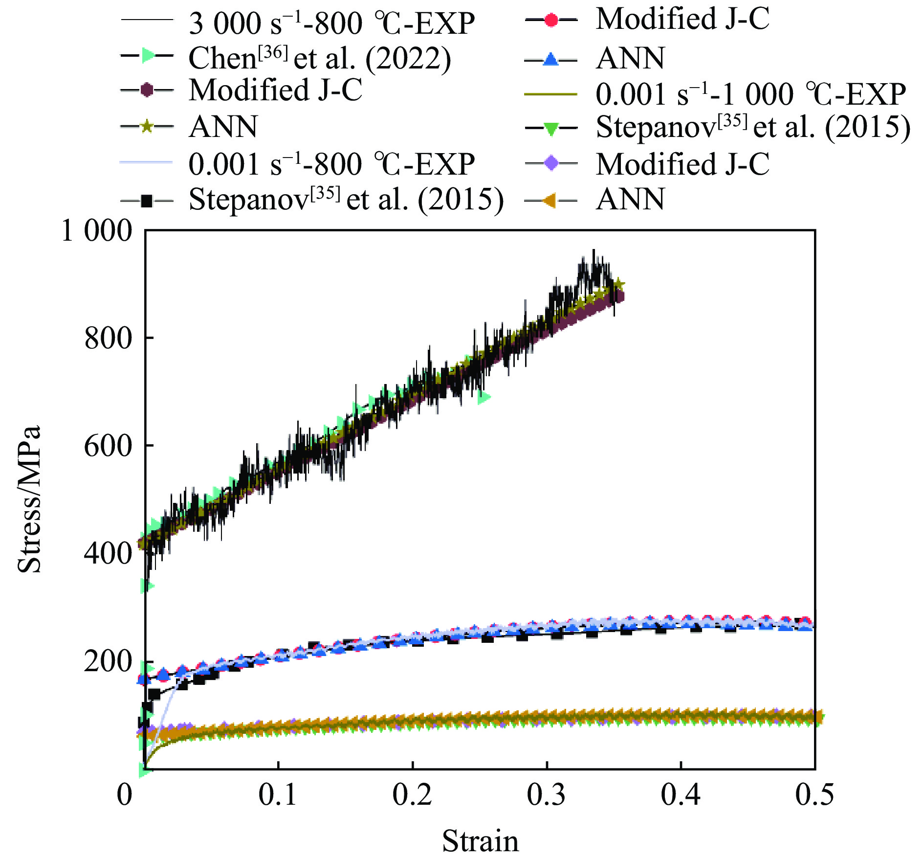 以CoCrFeNiMn高熵合金为研究对象,首先开展了不同温度与应变率下的压缩实验,获得了应力-应变数据;随后基于实验结果建立了修正的Johnson-Cook本构模型,并用于有限元仿真生成机器学习训练数据。在此基础上构建人工神经网络(artificial neural network, ANN)模型,对材料流动应力进行学习与预测。为实现神经网络在有限元框架中的高效应用,开发了基于FORTRAN的自动代码生成工具,将训练完成的ANN模型嵌入到Abaqus/Explicit计算平台中。结果表明,该方法预测精度高,相对误差低于1%,且计算效率优于传统本构模型。基于数据驱动的神经网络方法可有效替代传统本构模型在有限元中的应用,为金属材料的数值建模与模拟提供了一条有效路径。