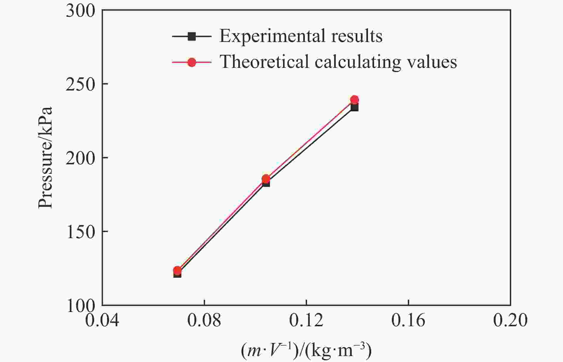 气体 比定容热容/(kJ·kg−1·K−1)(25 ℃) 密度/(kg·m−3)(25 ℃) 水蒸气(H2O) 1.400 一氧化碳(CO) 0.743 1.250 氮气(N2) 0.741 1.250 氧气(O2) 0.657 1.429 二氧化碳(CO2) 0.638 1.977 表 8 氮气工况下各药量下准静态压力计算值