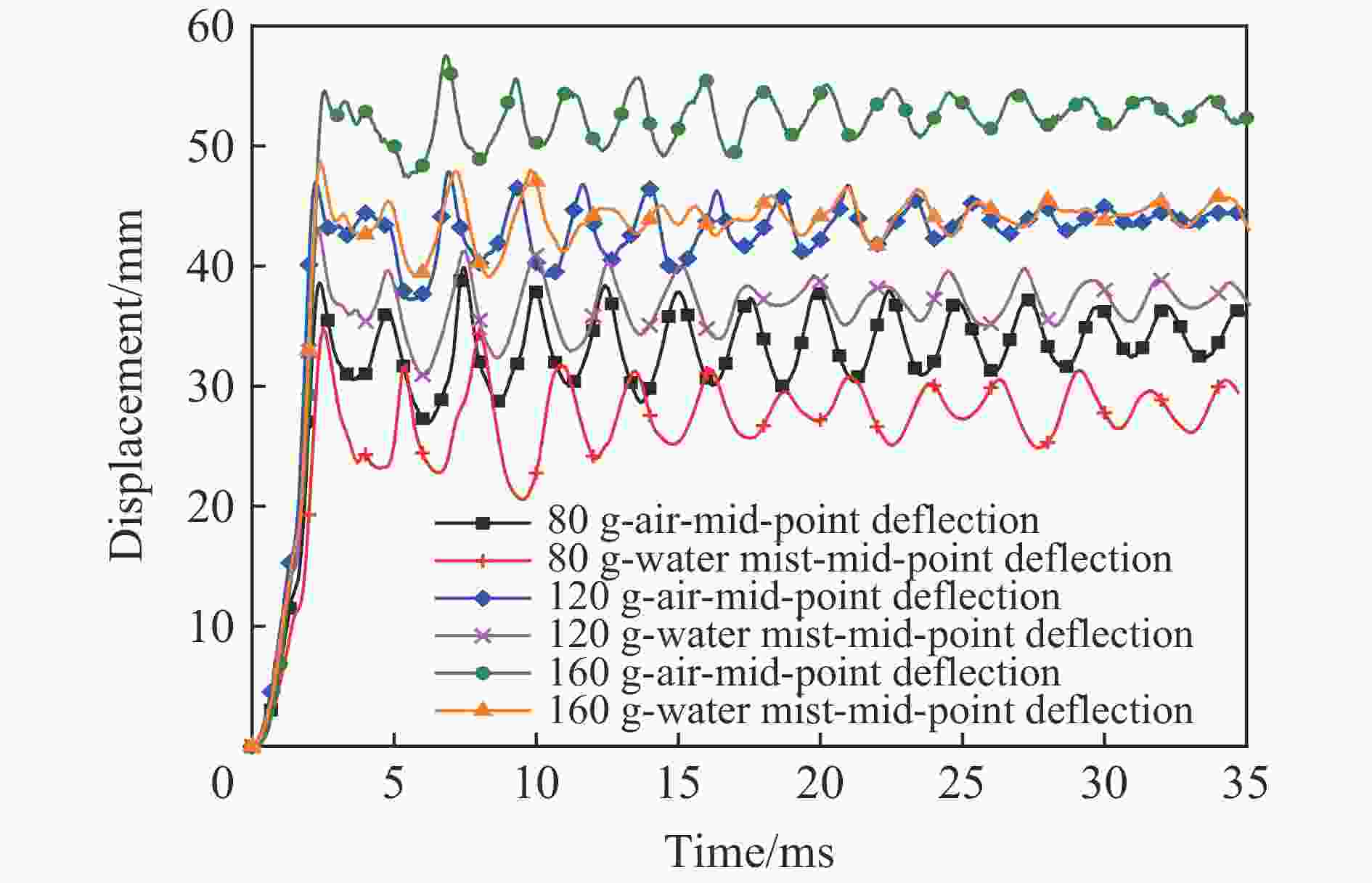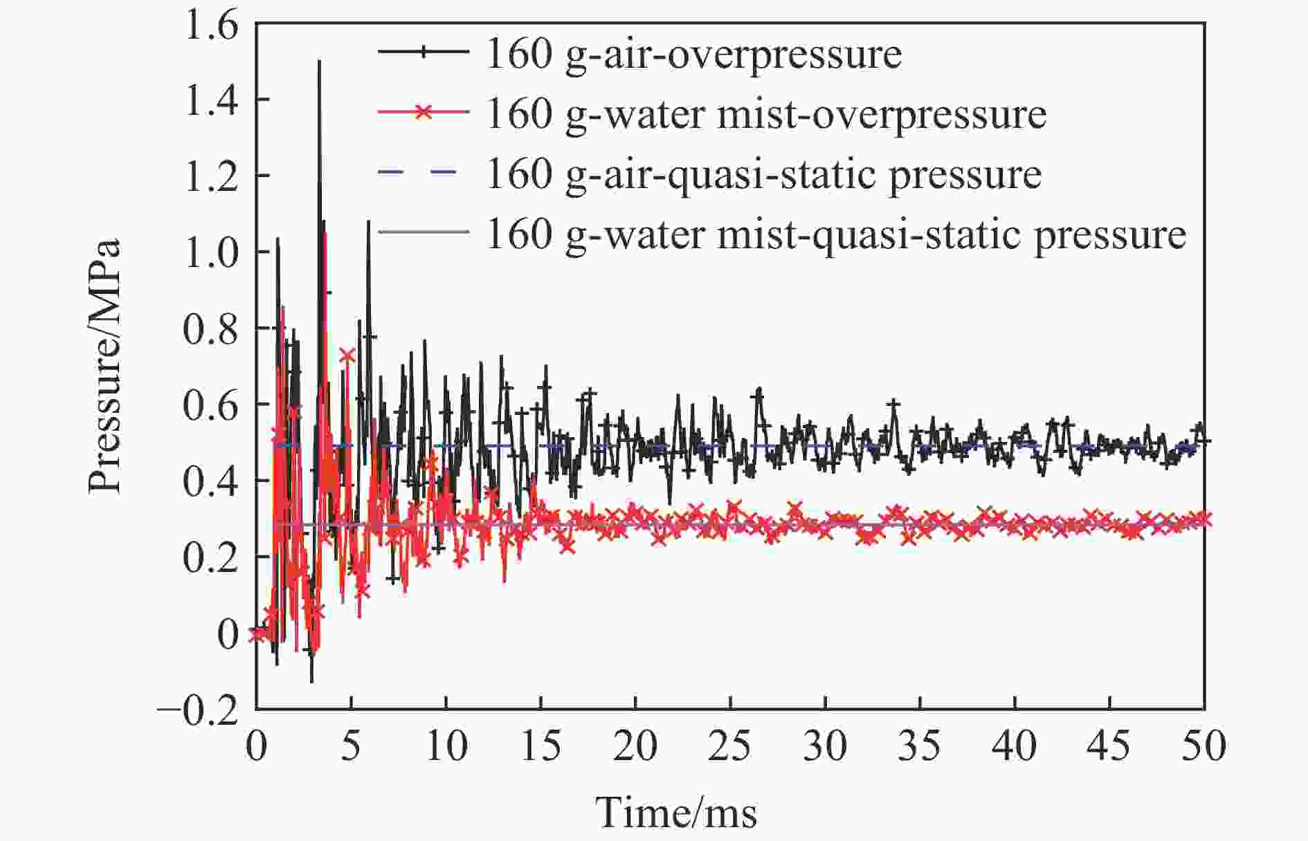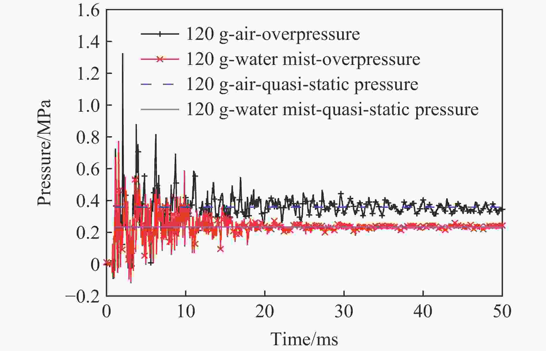 TNT质量/g 高度/mm 直径/mm 80 40.5 40.6 120 38.9 50.3 160 51.5 50.4 表 5 水雾和空气环境内爆载荷及等效能量