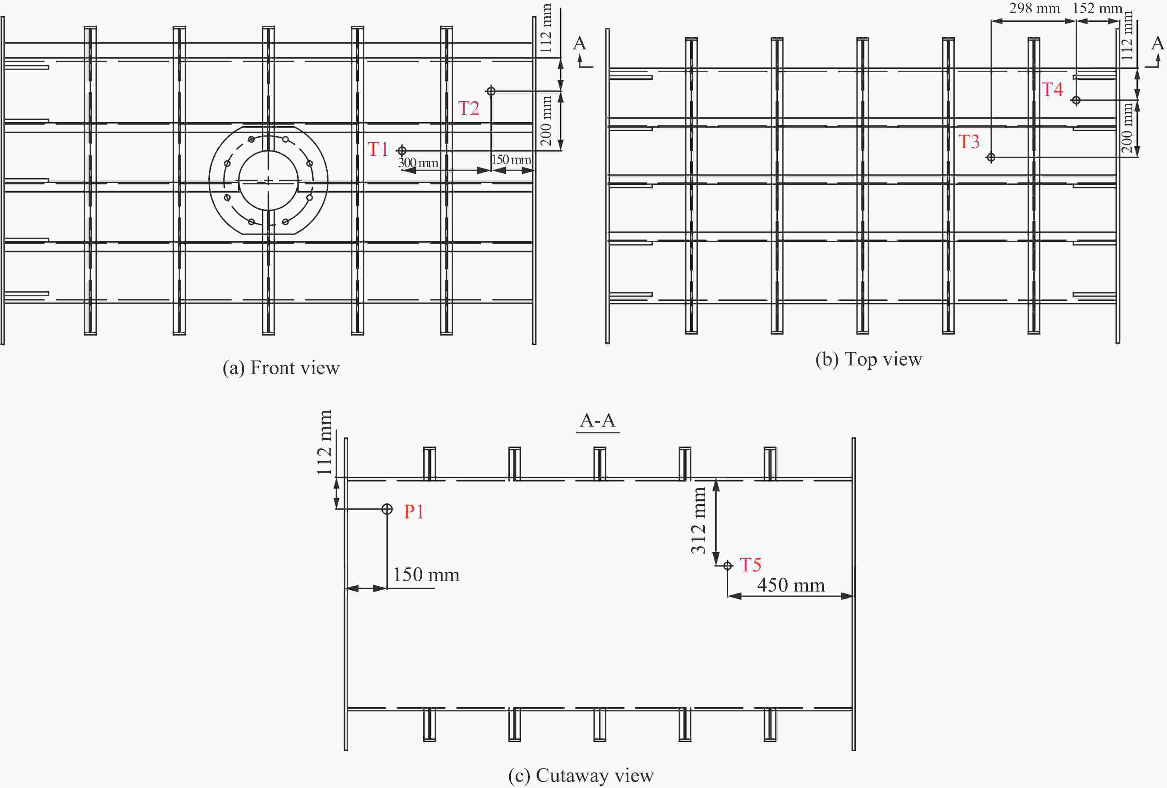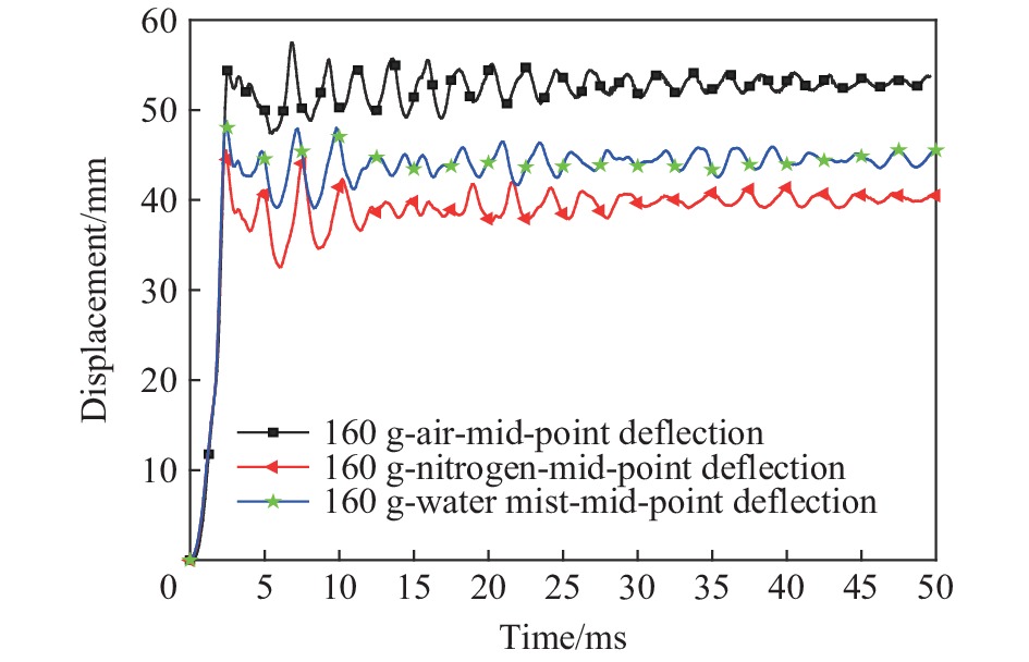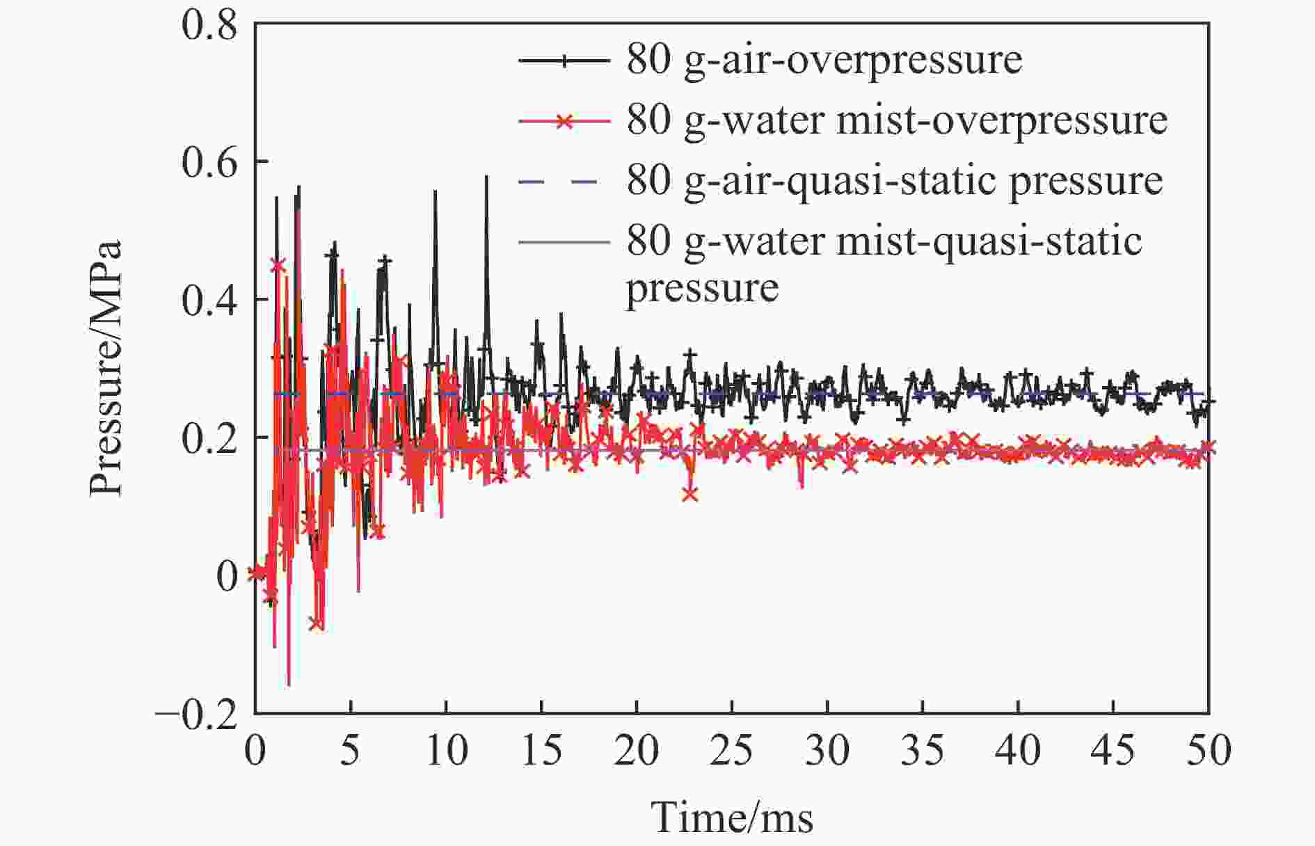 摘要: 炸药在密闭空间内爆炸时的爆炸载荷与在敞开环境中有很大差异,在密闭空间内,TNT炸药的爆炸产物能够与周围空气充分混合并发生燃烧反应进而释放额外的能量,使密闭空间内的反射冲击波及准静态压力均明显增加。为探究不同气体环境对密闭空间内爆炸载荷的抑制效应,开展了3种不同药量的TNT分别在空气、水雾和氮气环境密闭空间内的爆炸实验研究,通过理论计算和实验对比分析了密闭空间内的爆炸载荷压力、温度及受载钢板试件响应特性。结果表明,水雾和氮气均能有效降低空间内的准静态压力和温度,对准静态压力的平均降幅分别为36.0%和51.7%,对温度的平均降幅分别为42.6%和40.3%;在水雾和氮气环境中的爆炸载荷作用下,钢板试件动态响应较空气环境中显著降低,其中160 g药量下,水雾和氮气环境中钢板试件的最终变形分别减少了15.9%和23.5%,氮气的减弱效果优于水雾;水雾和氮气均能及时有效地抑制封闭空间内的爆炸载荷,降低结构的损伤程度。Abstract: The blast loading from an explosion in a confined space is quite different from that in an open environment. The detonation products of TNT can be fully mixed with the surrounding air, and release additional energy through combustion effect, resulting in a significantly increase of the reflected shockwaves and quasi-static pressure in the confined space.In order to investigate the mitigation effect of different atmosphere on explosion load in confined space, the experimental tests of TNT with three different charge masses were performed in a fully confined chamber filled with air, water mist and nitrogen, respectively. The explosive load pressure, temperature and the response characteristics of blast-loaded steel plates in the confined space were analyzed by theoretical calculation and experiment. The results show that both the water mist and the nitrogen can effectively reduce the reflected shock wave, the quasi-static pressure and the temperature in the confined chamber. The average reduction rate of quasi-static pressure is 36.0% and 51.7%, and the average reduction rate of temperature is 42.6% and 40.3%, respectively. The ideal gas state equation was used to calculate the theoretical value of quasi-static pressure in the confined space filled with nitrogen. It is found that the theoretical value is slightly larger than the experimental value, which is due to the insufficient combustion of detonation products in the test. The dynamic response of blast-loaded steel plates in water mist and nitrogen atmosphere is significantly lower than that in the air condition, and the residual deformation of the steel plate at 160 g TNT in water mist and air conditions, the attenuating effect of nitrogen is better than that of water mist. It is revealed that the mechanism of the water mist and nitrogen in mitigating the confined blast load and the subsequent dynamic response of structure is restraining the energy release from the combustion of the detonation products. The conclusions can provide references for the design of anti-blast structure.