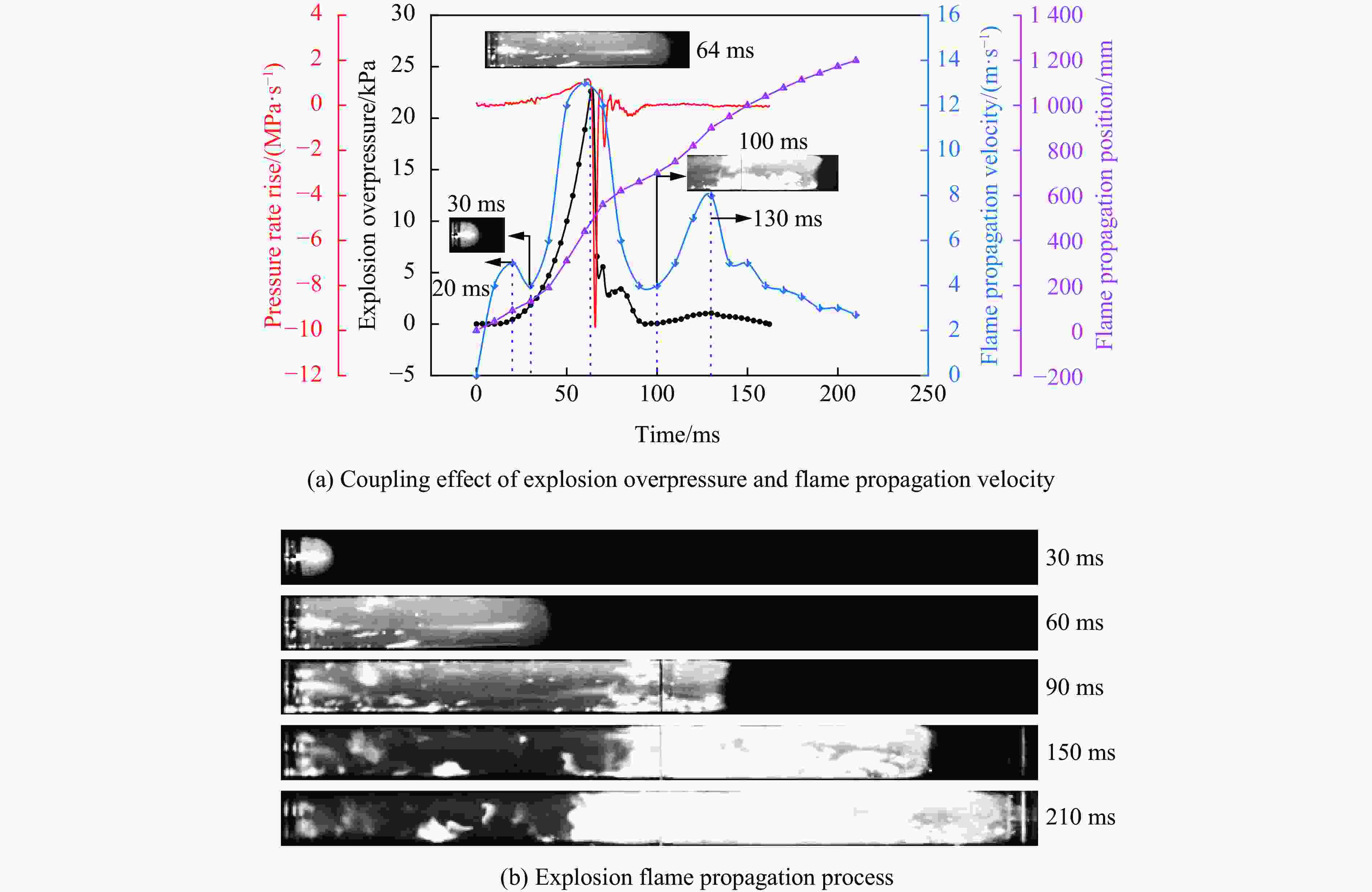 蔡运雄, 杜扬, 王世茂, 等. 封闭管道油气爆炸超压及火焰传播特性 [J]. 中国安全生产科学技术, 2019, 15(6): 61–66.CAI Y X, DU Y, WANG S M, et al. Characteristics of overpressure and flame propagation of oil and gas explosion in closed pipelines [J]. Science and Technology for Safe Production in China, 2019, 15(6): 61–66.
