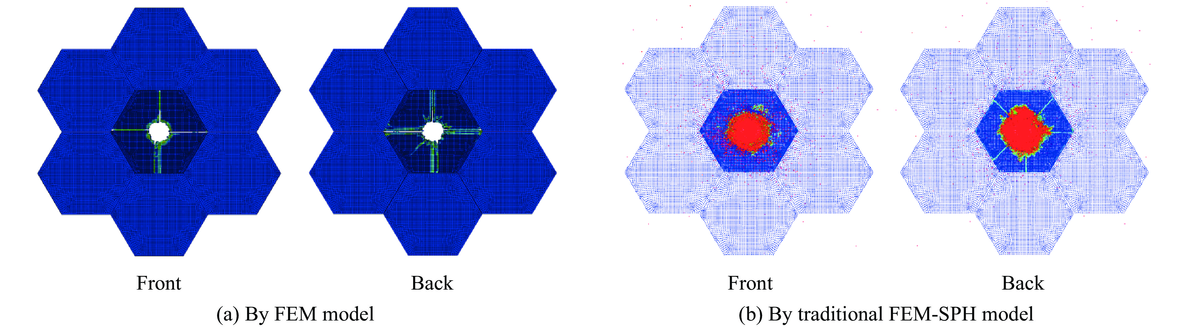 To improve the ballistic simulation accuracy of ceramic composite armors and glass composite armors (transparent armors) against small-caliber armor piercing bullets, the new FEM (finite element method) -SPH (smooth particle hydrodynamics) coupled model was proposed, which replaced the FEM model and JC (Johnson-Cook) material model of the armor-piercing-bullet core of traditional FEM-SPH coupled model with the SPH model and JH2 (Johnson-Holmquist-ceramics) material model. The results show that the new FEM-SPH coupled model can effectively simulate bullet core fragmentation and reduce FEM-SPH coupled calculation amount. So it can improve the computation accuracy and efficiency. And the FEM element/SPH particle size and armor modeling size of the new FEM-SPH coupled model are optimized.