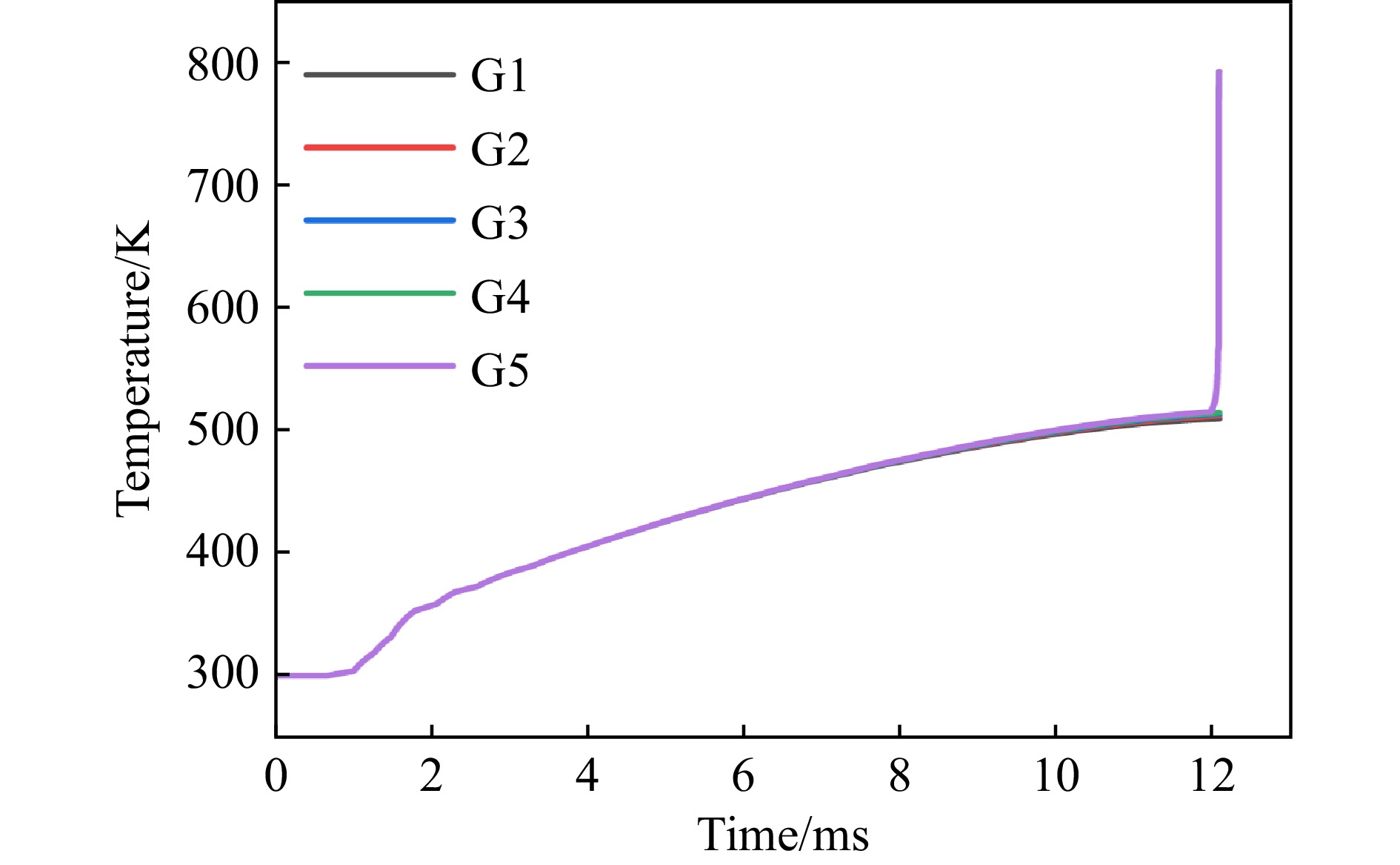 The issue of charge launch safety under the environment of high rifling pressure, high overload and high initial velocity has been one of the research hot topics. To investigate the impact mechanism of bottom gap on charge launch safety, a thermo-mechanical-solid coupling combustion model of the charge affected by bottom gap under impact loads based on the material point method is established. In this procedure, the formula for calculating temperature of air in the bottom gap during adiabatic compression is deduced, the relationship between the compression amount and the air temperature is quantitatively analyzed, the criteria and equation of state of the multi-material hybrid is constructed, and the calculation method of the temperature at the charge bottom affected by bottom gap in the launch process is established. The launch process of PBX charge with different bottom gap thicknesses is simulated by using the model, and the bottom temperature variation of PBX charge under different conditions are consistent with the experimental results, which verifies the correctness of the model. This model is then used to simulate the launch process of Composition B (COM B) charge with different bottom gap thickness in the launch environment, and the bottom temperature variation of charge is analyzed. The simulation results show that the charge temperature decreases gradually from the bottom to the top in the launch process and the area most likely to experience an ignition reaction is located at the charge bottom. The bottom temperature of COM B charge increases with the increase of the bottom gap thickness. The thickness of the bottom gap shall not be greater than 0.062 cm when the charge is in the launch safety state under the action of loading peak value of 324.7 MPa, which means that the presence of bottom gap seriously affects charge launch safety. From the simulation results, it is clear that the air in the bottom gap can be compressed in the launch process, and its temperature can rise rapidly; while in turn, it transfers heat to the charge bottom adjacent to the air, causing the temperature of the charge bottom to rise and making the charge bottom more susceptible to ignition reactions. The combustion model provides a theoretical basis for studying the charge launch safety.