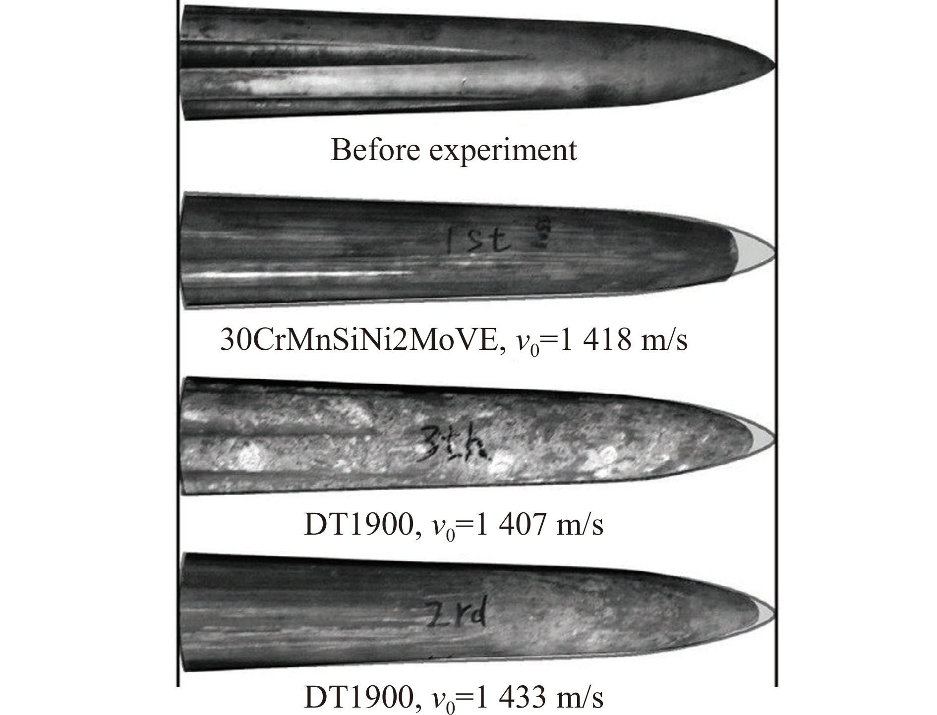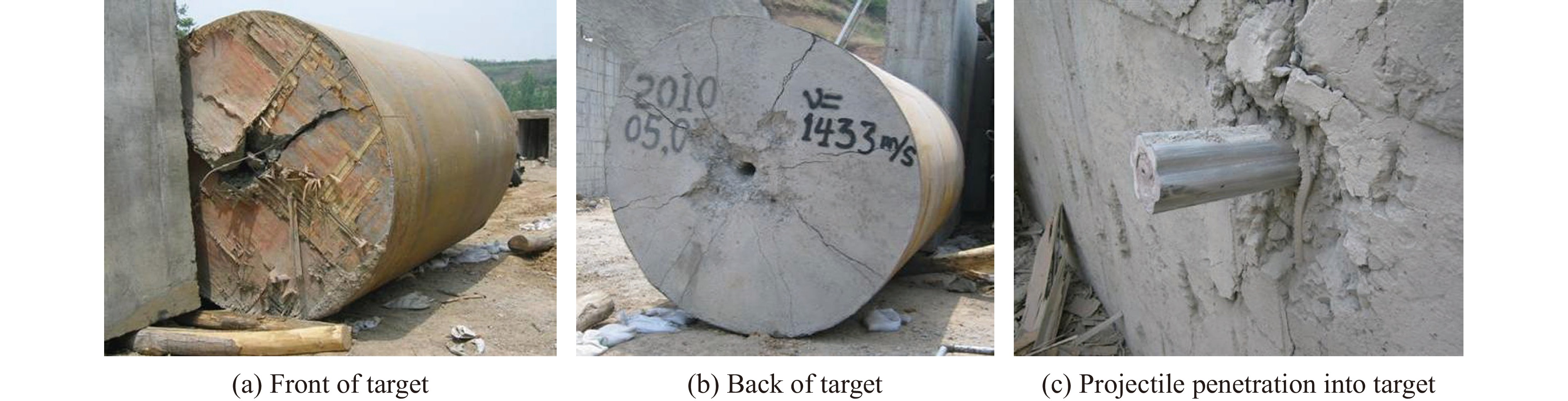 Two kinds of structural projectiles made of two different materials were designed in this paper. An experimental study of 11 kg projectiles penetrating the reinforced concrete target at 1400 m/s was carried out using a 203 mm Davis gun. Based on the experimental results, the structural response, penetration capability and related engineering issues of the projectile are discussed. The results show that when the reinforced concrete target is penetrated at a velocity of1400 m/s, the heads of projectiles made of two different materials experienced erosion and were mushroomed. This was caused by high temperatures resulting from friction between the projectile and the concrete during penetration, which significantly softened the surface of the projectile. Furthermore, the contact pressure between the projectile and the target exceeded the yield strength of the projectile material near the surface, causing the material to enter a state of plastic flow and ultimately leading to the erosion and mushrooming of the projectile head. Additionally, the surface material of the projectile was stripped due to the cutting action of the hard aggregates in the concrete, resulting in severe abrasion of the projectile body. When comparing the structural responses of projectiles made of different materials, it was evident that material properties influenced their behavior. Compared to 30CrMnSiNi2MoVE, DT1900, known for its higher strength, hardness and better resistance to impact compression, showed less erosion at the projectile head. However, the inferior shear resistance and wear resistance of DT1900 led to severe abrasion on the projectile body. The mass loss pattern of a conical projectile is different from that of a solid long-rod projectile, with the latter concentrated mainly in the projectile body. The conical flared tail design, while suppressing ballistic deflection, increased the contact area between the projectile body and the target, enhancing the abrasive and cutting actions of aggregates and steel. Moreover, under high-speed penetration conditions, the erosion and mushrooming of the projectile head could reduce the penetration depth; the less erosion at the head, the greater the penetration depth. In experiments, the maximum penetration depth of DT1900 projectiles could reach up to nine times the length of the projectile.