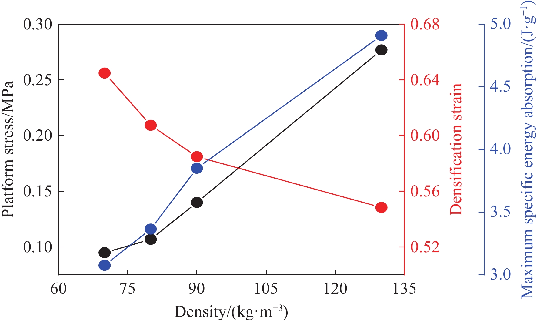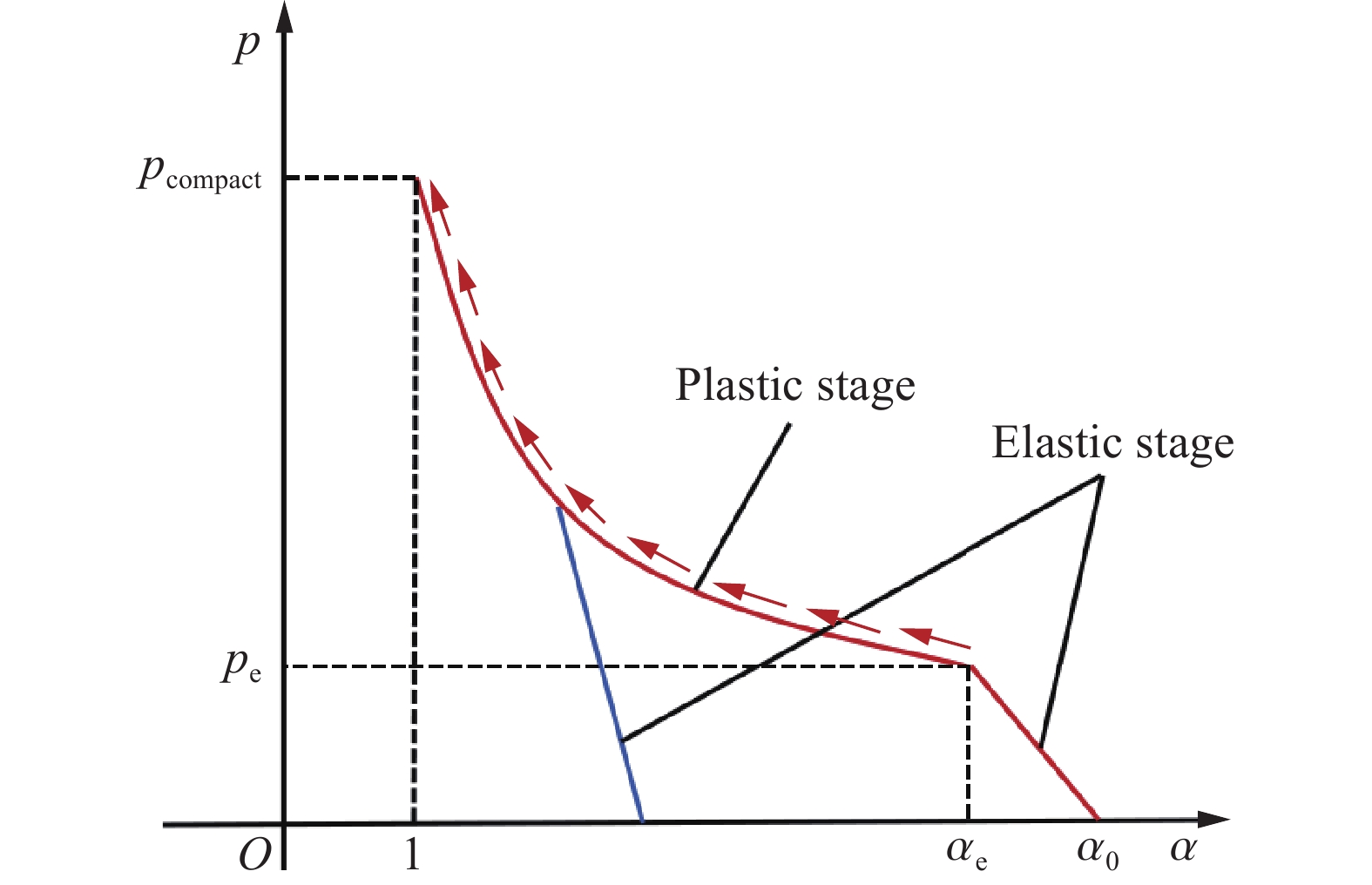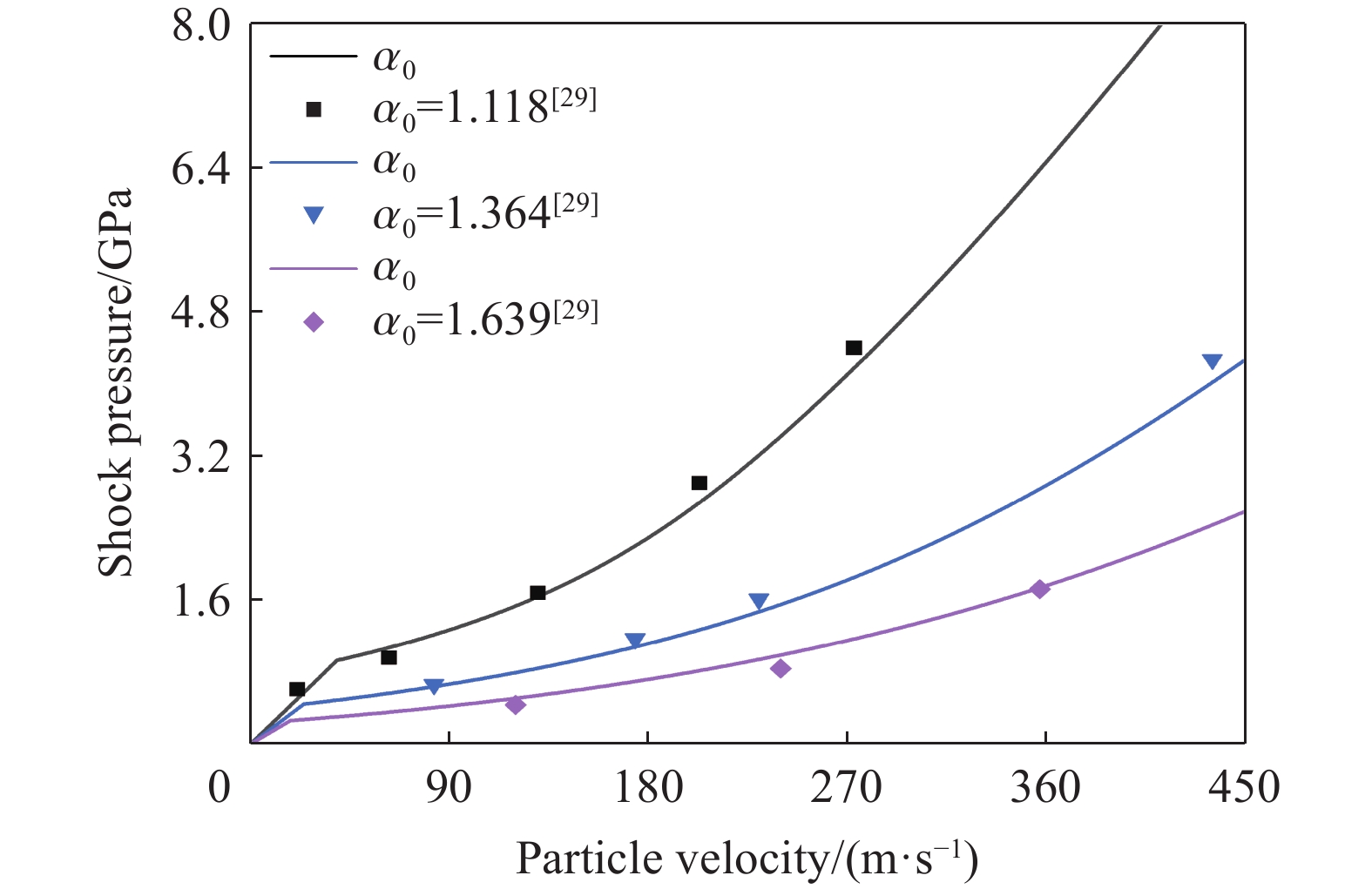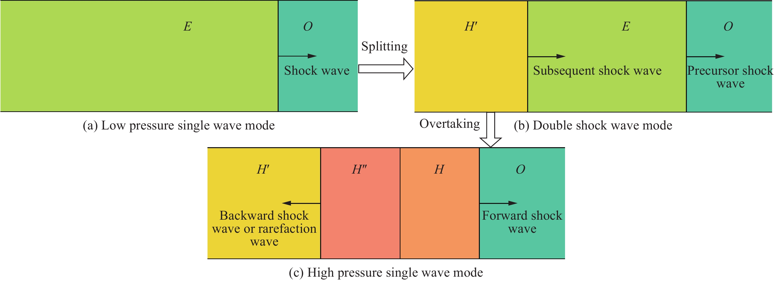 Porous materials exhibit pore collapse behavior during impact compression. Based on the shock wave structure observed in experiments carried out by predecessors, a theoretical analysis of the relationship between the shock wave formation process and the pore collapse behavior of porous materials is conducted. Firstly, considering the compression curve characteristics of porous materials and the overtaking of shock waves, it is proposed that the shock wave structure of porous materials has three modes: low-pressure single wave mode, double shock wave mode, and high-pressure single wave mode. These different shock wave modes are mainly caused by the influence of elastic-plastic mechanical behavior in pore collapse on the compression curve of porous materials. Furthermore, combined with the Wu-Jing equation of state, the calculation method of shock compression characteristics compatible with different shock wave modes is developed. The relationship between the Hugoniot curve of porous material and dense material is established, and the calculation equation of impact specific volume compatible with single shock wave mode is obtained, which can directly calculate the critical specific volume without approximate conditions. In addition, the equation of pore collapse established by Carroll is modified by taking the linear approximation of the variation of porosity with pressure in the elastic stage and the elastic-plastic stage and considering the relationship between the stress of the matrix material and the macroscopic stress in the porous material. Based on the calculation model of shock compression characteristics considering pore collapse behavior, the Hugoniot data of the material are calculated, and the influence of pore collapse behavior on the shock compression characteristics of porous materials is discussed. The results show that the shock compression characteristics of the material are significantly affected by the pore collapse behavior at lower pressures, and the model in this paper can predict the shock wave parameters of porous materials more accurately.