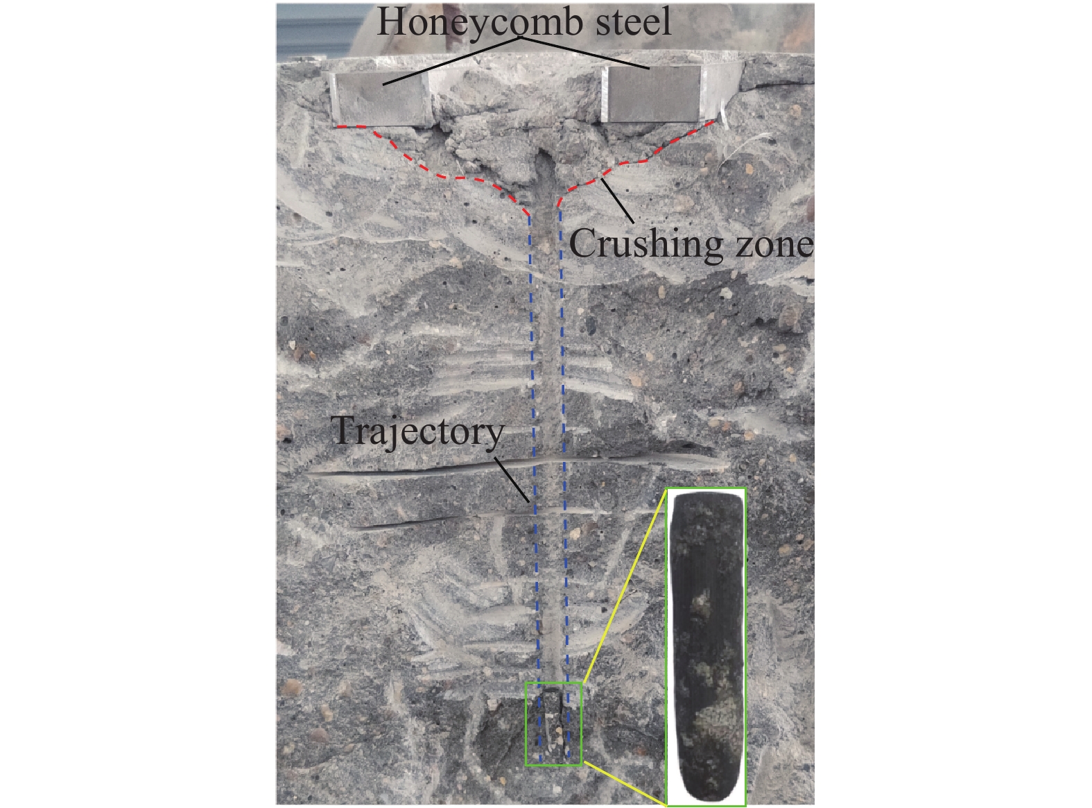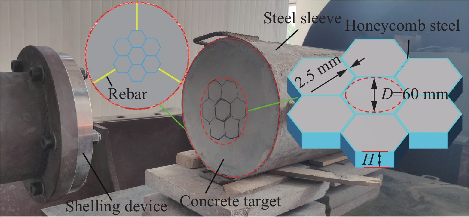To investigate the penetration resistance of metal honeycomb tube-confined concrete structures under hypervelocity impact, penetration experiments were conducted using a two-stage light gas gun with projectile velocities near