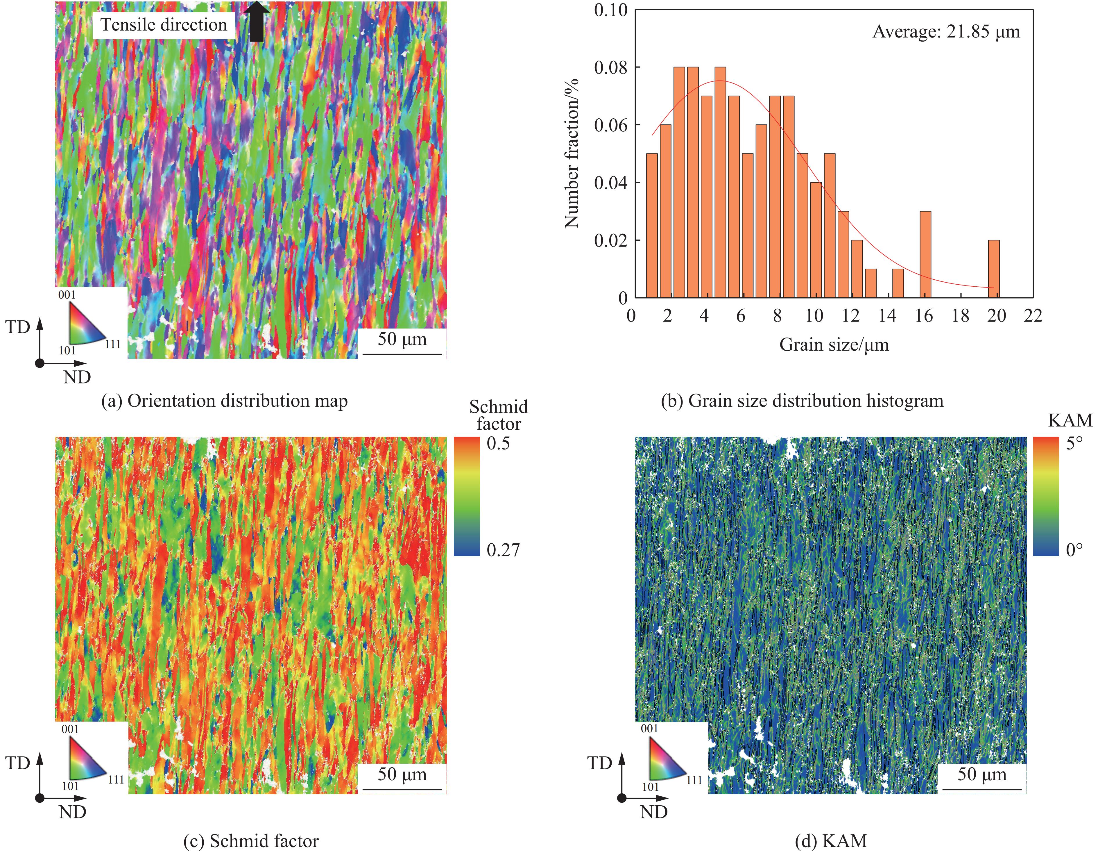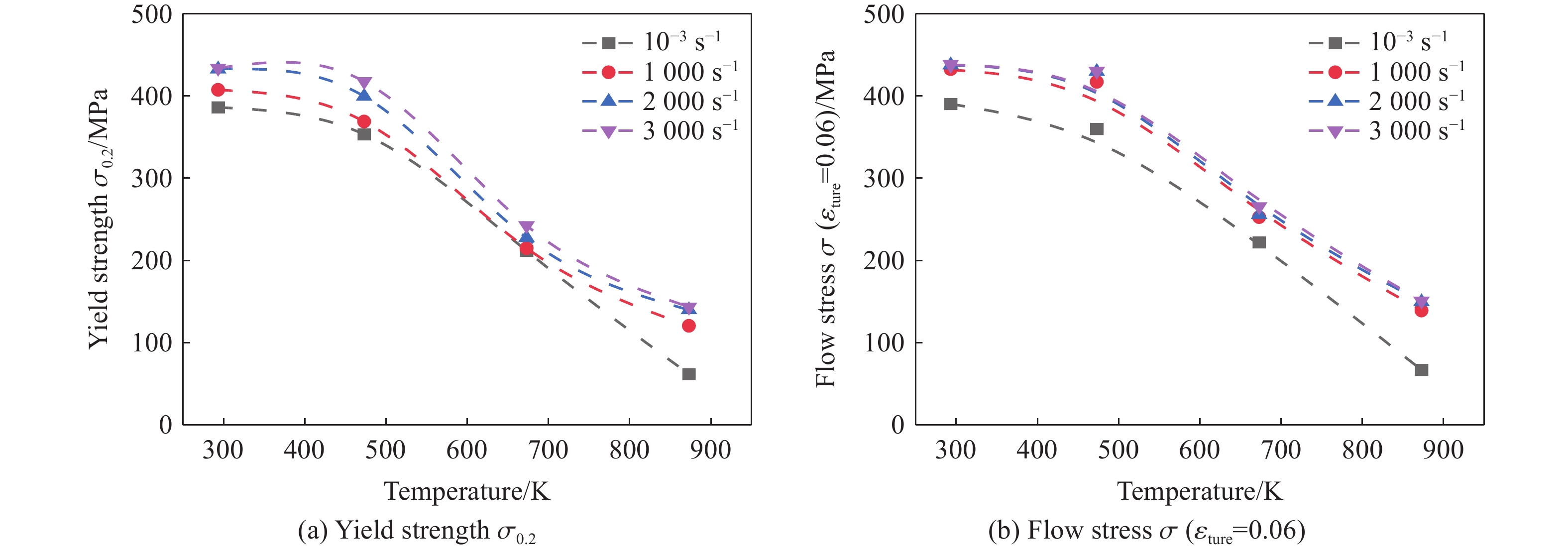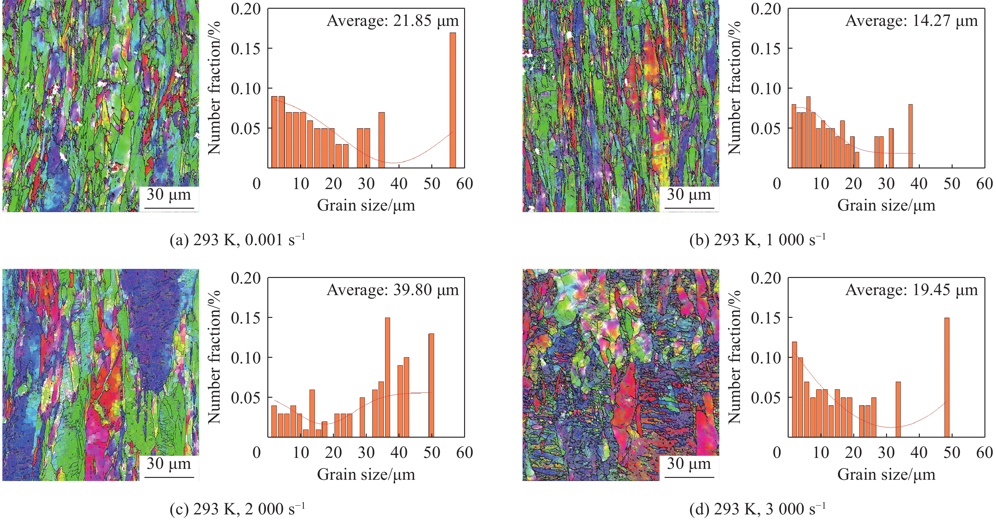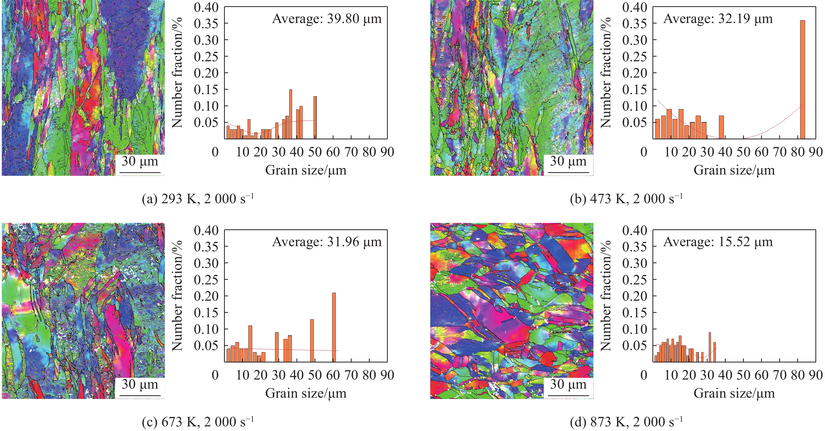 With the increasing speed of trains, the impacts of mechanical shock, arc heat, and Joule heat on the high-speed railway catenary system have become increasingly significant. The coupling effect of high temperature and impact load has emerged as a key limiting factor for the safe operation of the pantograph-catenary system. This study focuses on copper-magnesium alloy materials used in the catenary system to address the challenges of dynamic impact and friction-induced heat generation in high-speed railways. To investigate the mechanical properties of the high-speed railway pantograph-catenary system under service conditions such as dynamic impact and frictional temperature rise, a DF14.205D electronic universal testing machine and a split Hopkinson pressure bar were employed. The uniaxial compression mechanical properties of the copper-magnesium alloy in the catenary were tested over a strain rate range of 0.001 s−1 to3000 s−1 and a temperature range of 293 K to 873 K. The strain-rate effect and temperature sensitivity of the stress-strain response were carefully analyzed. The study also revealed the compression deformation mechanism and the evolution law of the alloy’s microstructure under the combined influence of strain rate and temperature. Furthermore, a dynamic constitutive model was established to accurately describe the plastic flow behavior of the material. The findings indicate that during compression, the copper-magnesium alloy materials exhibit significant strain-rate strengthening and temperature softening effects. These effects result from the combined action of work hardening, strain rate, and temperature softening. When the temperature exceeds 473 K, temperature softening becomes the dominant factor in material deformation, and the elevated temperature can stimulate dynamic recovery and dynamic recrystallization processes. The modified Johnson-Cook model was found to be capable of accurately predicting the plastic flow stress-strain response. These research outcomes provide valuable guidance and references for the safety design and evaluation of the high-speed train pantograph-catenary system during its service.