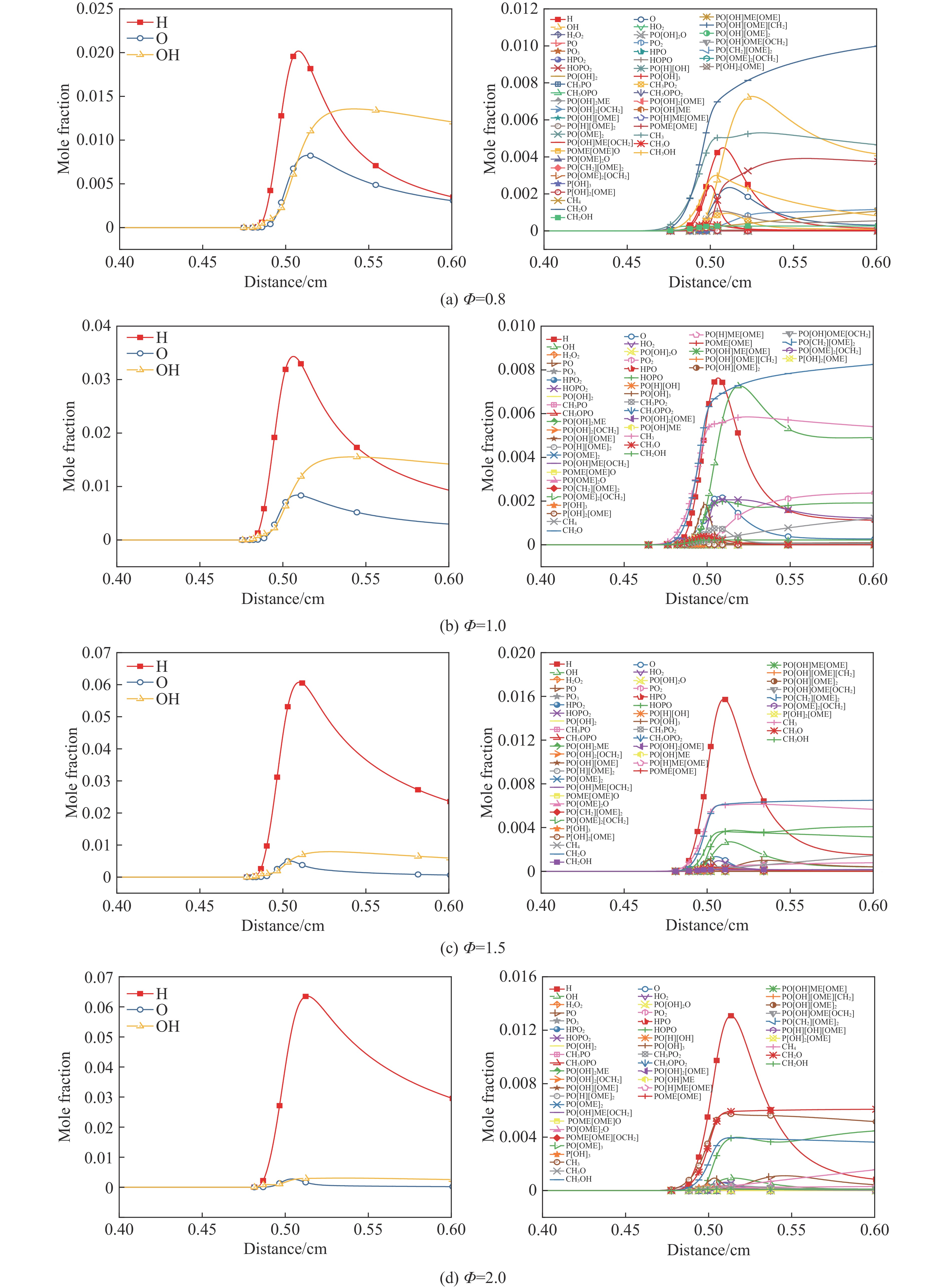 Hydrogen is a renewable, carbon-free energy carrier and an important chemical feedstock. However, its high burning velocity and low ignition energy render it more hazardous than conventional fuels. To effectively control the explosion intensity of hydrogen-air mixtures in confined spaces and elucidate the suppression mechanism of micron-sized water mist containing dimethyl methylphosphonate (O=P(CH3)(OCH3)2), a rectangular constant-volume combustion chamber was first constructed, and a schlieren optical system was employed to capture fine flame structures under the addition of the suppressant. Secondly, based on the kinetic models proposed by Jayaweera et al. and Jing et al., a coupled chemical kinetic mechanism for O=P(CH3)(OCH3)2 was developed and validated for accuracy. Lastly, the influence of O=P(CH3)(OCH3)2-containing fine water mist on flame instability structures, mean flame speed, explosion overpressure, and mean pressure rise rate was then investigated under different equivalence ratios, together with the chemical kinetic mechanism and pathways governing hydrogen-air deflagration suppression. Results indicate that water mist containing O=P(CH3)(OCH3)2 promotes the formation of cellular structures on the flame front, thereby inducing flame instability. At equivalence ratios of 0.8, 1.0, and 1.5, the O=P(CH3)(OCH3)2-laden water mist effectively reduces the average flame speed (with reductions ranging from 24.2% to 47.2%) and suppresses the formation of tulip flames, which are replaced by wrinkled flame structures. The mist suppresses the pressure rise rate by reducing the laminar flame speed, but simultaneously enhances flame instability, which tends to increase the pressure rise rate. The overall suppression performance (with pressure reduction ranging from 41.0% to 65.8%) results from the coupling of these two opposing effects. Additionally, the O=P(CH3)(OCH3)2-laden mist achieves effective explosion suppression by reducing the concentrations of H∙, O∙, and OH∙ radicals, with reductions exceeding 80%. The physical suppression arises from pre-flame cooling and dilution effects of the water mist, while the chemical suppression is attributed to the decomposition of O=P(CH3)(OCH3)2 into phosphorus-containing radicals such as HOPO∙, HOPO2∙, HPO2∙, PO(OH)2∙, and PO(H)(OH)∙. These species scavenge reactive H∙ and OH∙ radicals, promoting the formation of stable products like H2 and H2O, thereby interrupting the chain reactions in hydrogen-air explosions.