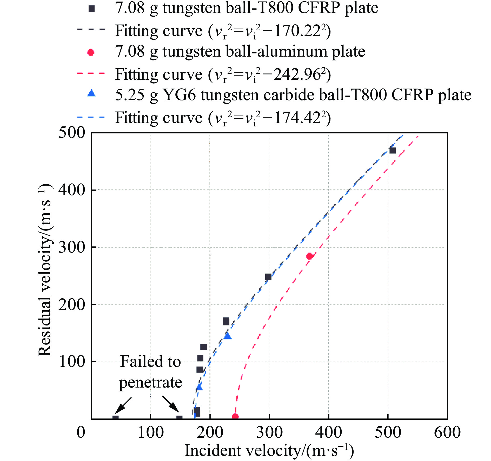 In response to the research demand for the impact resistance of carbon fiber-reinforced polymer (CFRP) laminates commonly used in aircraft, spherical fragment penetration and static blast tests were conducted on T800/3200 CFRP laminates, with CT scanning technology and damage assessment theories employed for further analysis. The damage characteristics and performance of T800/3200 CFRP laminates under two typical loads-fragment penetration and explosive shock waves-were investigated and compared with 2024-T3 aluminum, a material widely used in the aviation manufacturing industry. Two control groups were established: tungsten fragments impacting aerospace aluminum plates and tungsten steel fragments striking CFRP laminates. Impact velocities and residual velocities were precisely measured using high-speed photography. During fragment penetration tests, relationships among incident velocity, residual velocity, and energy absorption were analyzed based on the Recht–Ipson ballistic limit model. The internal damage morphology of CFRP targets was examined in detail using high-resolution CT scanning technology to characterize delamination patterns and progressive failure across different depths and plies. In blast tests, the damage morphology and maximum deflection of target plates were systematically observed and recorded. The blast resistance of CFRP laminates and aluminum plates was quantitatively compared using advanced mathematical methods incorporating boundary condition equivalence and overpressure equivalence principles to ensure a fair and accurate comparison. The results show that, after spherical fragment penetration, the T800/3200 CFRP laminate generates a delamination damage zone resembling a truncated cone, with the volume of the cone decreasing as the penetration velocity of fragments increases. The T800/3200 CFRP laminate exhibits inferior performance against fragment penetration compared with aerospace aluminum but offers significantly enhanced blast resistance. This characteristic makes it more effective in maintaining structural safety and aerodynamic stability during flight missions under explosive threats. The findings provide theoretical and empirical support for improving the safety and reliability of aerospace vehicles through optimized material selection and structural design.