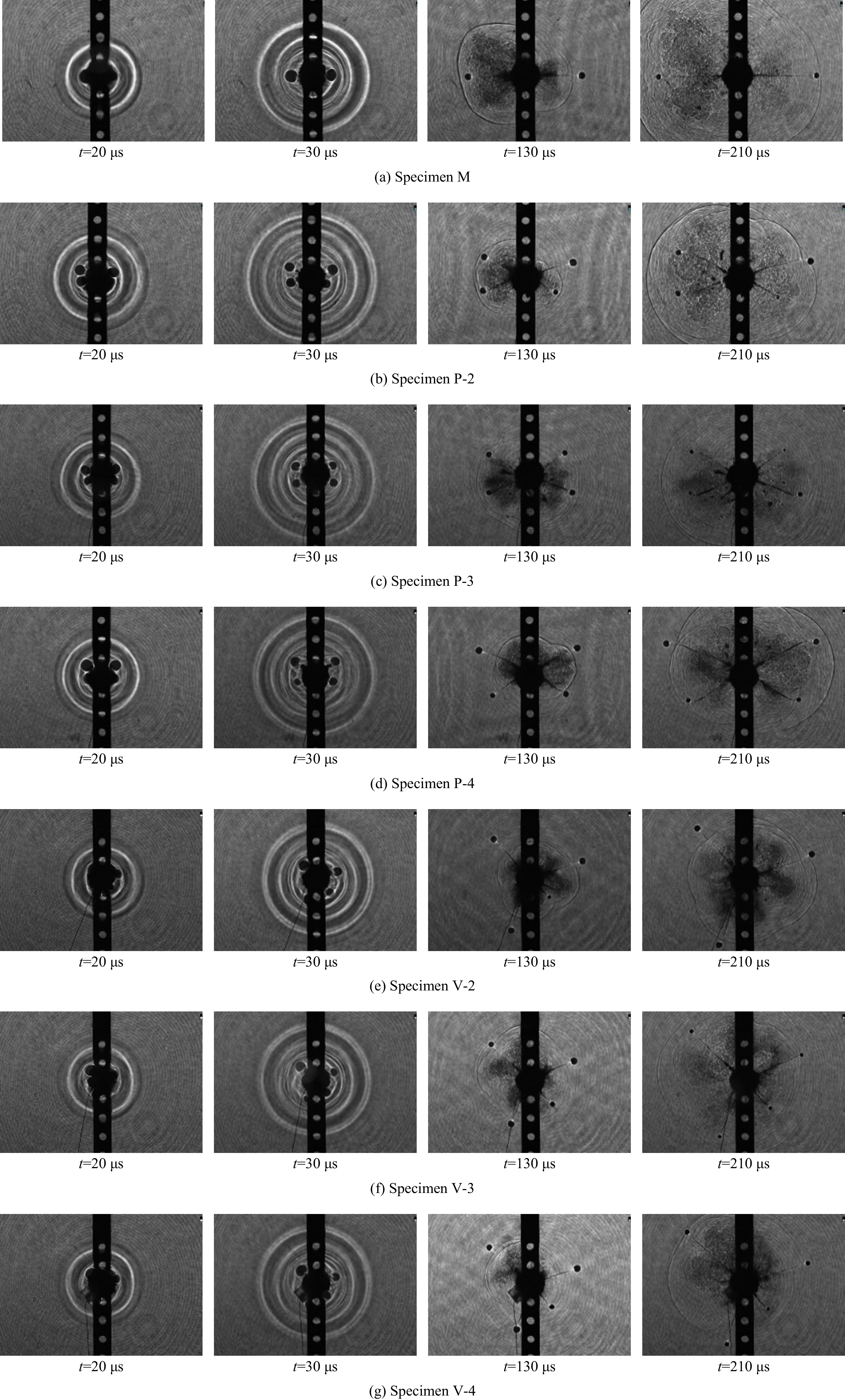 The defective cracks were prefabricated on the wall of the notch holes by using polymethyl methacrylate (PMMA) material, which were parallel or vertical to the notch, and the distance from the defective cracks to the hole center was 2, 3, and 4 mm. The influence of notch hole wall defects on the crack propagation of notch blasting was investigated by using a digital dynamic caustic experimental system with numerical simulation. At the same time, triacetone triperoxide (TATP) explosives were employed as a charge, which served to mitigate the effect of gun smoke on the dynamic caustic experimental system and to improve the experimental design. The results demonstrate that the reflection of the stress wave at parallel defects results in a downward shift in the direction of crack initiation at the notch, but the refraction of the stress wave at vertical defects has no effect on the direction of crack initiation. The presence of wall defects in the hole impedes the impact of stress waves and blast gases on the cracks at the notch, resulting in a reduction in the length, expansion rate, and strength factor values of the cracks, and the degree of inhibition is contingent upon the distance of the defects from the centre of the borehole. As the distance between the parallel defects and the centre of the borehole increases, the inhibition effect of the parallel defects on both sides of the notch cracks gradually decreases. The inhibition effect of vertical defects on the far side of the notch cracks gradually decreases, while the inhibition effect on the proximal side of the notch cracks gradually enhances. The left and right notch cracks of vertical defects are more significantly affected by the boundary reflected stress wave than those of parallel defects. The notch cracks on the left side do not exhibit a clear pattern, owing to the pre-existing reflected stress wave at the defects. In contrast, the notch cracks on the right side are substantially diminished by the boundary-reflected stress wave as the vertical defects move away from the centers of the notch holes.