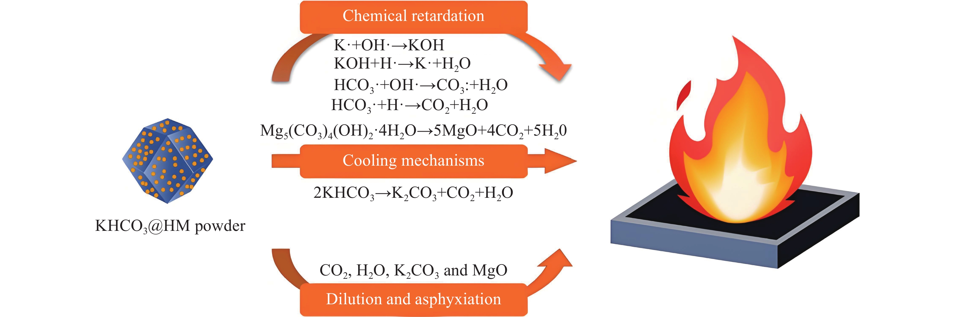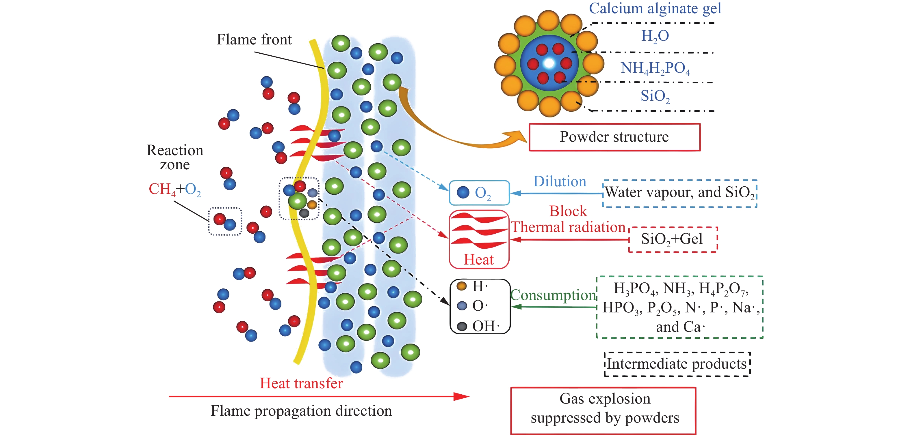 The leakage of combustible gas could lead to serious explosion accidents, which could cause great damage to people’s lives and property. Explosion suppression technology can effectively reduce the consequences of the explosion accidents, which is an important part of combustible gas explosion safety protection technology. As the core component of explosion suppression device, the performance of the explosion suppressant can directly affect the reliability of explosion suppression system. The research results in the field of explosion suppression at home and abroad are focused on, and the explosion suppression powder and its inhibition mechanism are systematically summarized and analyzed. Based on the different compositions, the explosion suppressing powder is divided into one-component and compound materials. According to the difference of the suppressing mechanism, the one-component suppressing powder is divided into active powder and inert powder. Due to the synergetic effects of different substances, the development of the compound material is the research hotspot. In the literature review part, this paper follows the structure “General introduction of powder materials—Related experimental and theoretical research—Suppression mechanism summary”. The first part provides the general introduction of the material, including the origin, structure and property. The second part offers the summary of the related research result about the material. The third part focuses on the physical and chemical suppression mechanism of different material, which contributes to the deeper understanding of the suppression effect. Finally, the existing problems of the research at present is summarized and the development of the future research work is discussed. In addition, this article proposes to standardize the testing process, emphasizes the use of numerical simulation to guide the suppressing of material synthesis and reduce the blindness of research. The aim of this review is to provide scientific understanding and technical support for the development of high-efficiency explosion suppression technology.