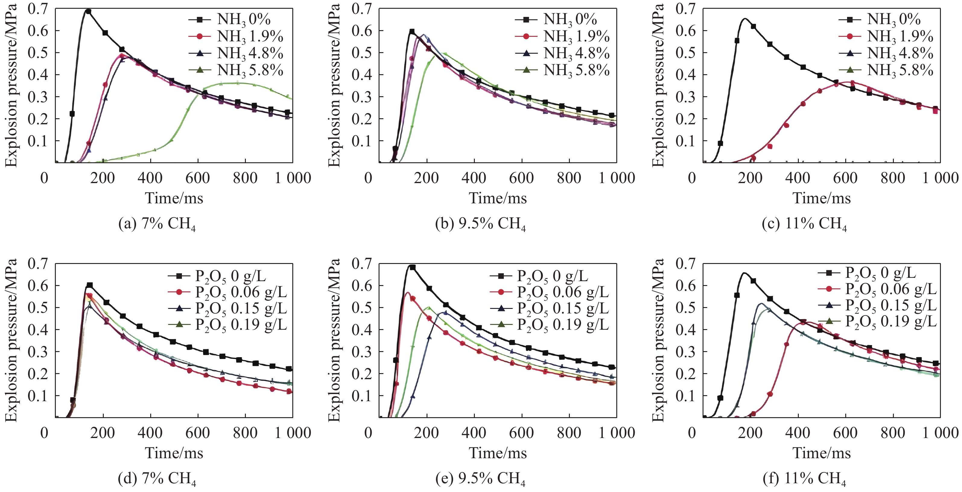Hydrogen-doped natural gas technology has been gradually used in pipeline transportation, but hydrogen-doped natural gas is suspectible to leakage and explosion accidents. The study used a 20-L spherical device to investigate the effects of hydrogen doping ratio and CO2 addition on the explosion pressure and flame propagation characteristics of hydrogen-doped natural gas, and the chemical reaction kinetics method was used to analyze the explosion mechanism. The results showed that the hydrogen doping ratio has a promoting effect on the pressure parameters of hydrogen-doped natural gas explosion and flame propagation speed. As the hydrogen doping ratio increases, the maximum explosion pressure gradually increases, while both the rapid burn time and sustained burn time decrease progressively. The maximum rise rate of explosion pressure and flame propagation speed gradually increase when the hydrogen doping ratio is lower than 0.5. When the hydrogen doping ratio is greater than 0.5, the maximum rise rate of explosion pressure and flame propagation speed rise rapidly. The addition of CO2 has an inhibitory effect on the explosion pressure and flame propagation speed of the mixed gas, but the suppression effect on pressure parameters with high hydrogen doping ratio is weak. Through reaction kinetic analysis, it can be seen that as the hydrogen doping ratio increases, the laminar burning velocity and adiabatic flame temperature gradually increase. Meanwhile the concentration of active free radicals and the product formation rate increase significantly, and the mixing of hydrogen changes the reaction path of methane. When the hydrogen doping ratio is greater than 0.5, reactions R84, R46 and R3 enter the top ten steps of the reaction, producing H and OH radicals, which promotes the reaction. CO2 can reduce the laminar burning velocity, adiabatic flame temperature, active free radical concentration and product formation raten of the mixed gas, but adding CO2 does not change the reaction path of methane.Hydrogen-doped natural gas technology has been gradually used in pipeline transportation, but hydrogen-doped natural gas is prone to leakage and explosion accidents. The study used a 20L spherical device to investigate the effects of hydrogen blending ratio and CO2 addition on the explosion pressure and flame propagation characteristics of hydrogen-doped natural gas, and the chemical reaction kinetics method was used to analyse the explosion mechanism. The results showed that the hydrogen doping ratio has a promoting effect on the hydrogen-doped natural gas explosion pressure parameters and flame propagation speed. As the hydrogen doping ratio increases, the maximum explosion pressure gradually increases, the rapid burn time and sustained burn time are gradually decreasing. The maximum explosion pressure rise rate and flame propagation speed gradually increase when the hydrogen doping ratio is less than 0.5. When the hydrogen doping ratio is greater than 0.5, the maximum explosion pressure rise rate and flame propagation speed rise rapidly. The addition of CO2 has an inhibitory effect on the explosion pressure and flame propagation speed of the mixed gas, but the suppression effect on pressure parameters with high hydrogen doping ratio is poor. Through reaction kinetic analysis, it can be seen that as the hydrogen doping ratio increases, the laminar burning velocity and adiabatic flame temperature gradually increase, the mole fraction of active free radicals and the rate of product increase significantly, and the mixing of hydrogen changes the reaction path of methane. When the hydrogen doping ratio is greater than 0.5, reactions R84, R46 and R3 enter the top ten steps of the reaction, producing H and OH radicals, which promotes the reaction. CO2 can reduce the laminar burning velocity, adiabatic flame temperature, active free radical mole fraction and rate of production of the mixed gas, but adding CO2 does not change the reaction path of methane.