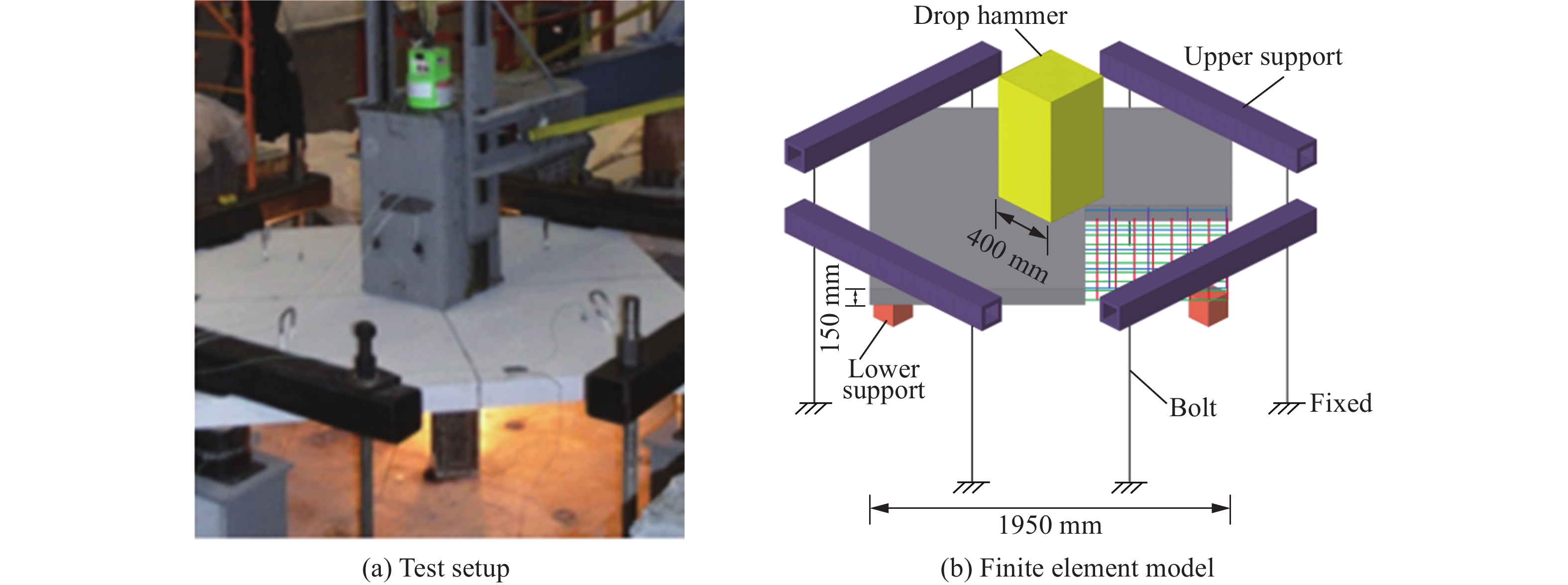 为了研究内部爆炸荷载作用下钢筋混凝土单房间的抗爆性能,全尺寸钢筋混凝土单房间建筑物被设计并建造,其尺寸为4m×4m×3m,并在房间内几何中心放置3kgTNT进行内爆炸试验,分析单房间结构的损伤特征。此外,结合LS-DYNA软件对钢筋混凝土单房间结构进行不同炸药当量的数值仿真,研究了单房间建筑物的损伤过程和冲击波传播规律,并且基于试验和模拟结果,使用无量纲加权参数Dr划分了单房间结构的破坏模式。研究表明:3kg炸药在房间结构几何中心爆炸时,单房间结构出现顶板鼓包的现象,顶板边缘出现长条形破口,门口处有裂纹,但整体未垮塌;在内爆炸工况下,钢筋混凝土建筑物的局部损伤特征不仅与炸药当量密切相关,还显著受到结构连接节点设计及构造细节的影响;由于钢筋混凝土动态响应的整体时程较长,在建筑物尚未对上一次冲击波做出明显反应时,下一波冲击波已作用于建筑物,使其在极短时间内多次受冲击,这与通常意义的多次累计爆炸有所区别;通过改变装药量,划分出5种损伤逐级加重的破坏模式(Model Ⅰ 至Model Ⅴ),以加权参数Dr量化定义划分了5种破坏模式,并且拟合了其与炸药当量的函数曲线,研究结果可为剪力墙结构房间毁伤评估提供参考。