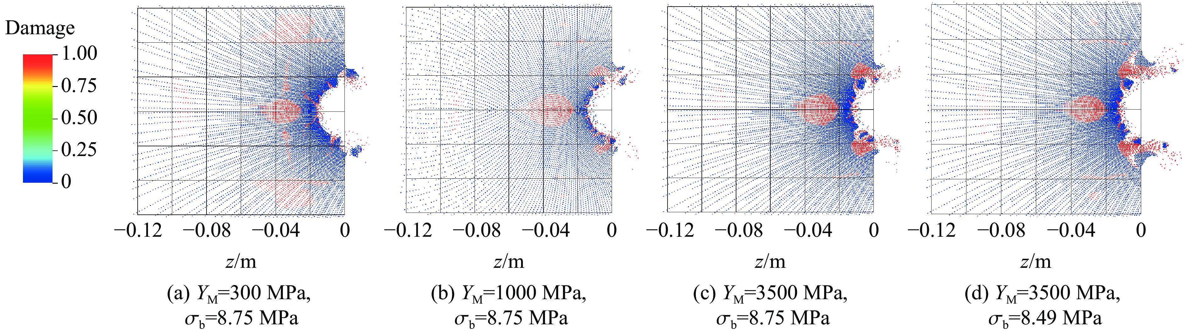 In order to investigate the impact of target damage on projectile penetration performance, a series of penetration experiments were conducted on a concrete target utilising a former jet and a subsequent kinetic energy projectile. The critical factors influencing the performance of pre-damaged concrete penetrated by the projectile were analyzed. The relationship between the strength of the concrete materials in the pre-damaged concrete target was determined. Based on this, a semi-empirical model of projectile penetration of pre-damaged concrete was established by combining the aforementioned cavity expansion theory with the results of the preceding analysis. The impact of projectile and target parameters on the performance of secondary penetration of the projectile was then analyzed. The findings indicate that the impact of pre-damaged concrete on the depth of projectile penetration is contingent upon the discrepancy in crater volume and concrete damage. It can be posited that the damage to the target is the predominant influencing factor. When there is a finite-length damage zone within the concrete target and the diameter of the cavity of the target is between 0.3 and 0.5 time the diameter of the projectile, the effect is even less pronounced. When a finite-length damage zone exists within the target, the pre-damage cavity is 0.3-0.5 times the diameter of the projectile. In this instance, the gain in depth of penetration is most pronounced. In the event of penetrating damage to the target, a ratio of 0.3 between the diameter of the target tunnel and that of the projectile is observed. The difference in penetration depth between the pre-damaged target and the pre-drilled target is found to be greater, with a gradual increase in this difference as the ratio increases further. When the damage state of the target is certain, decreasing the projectile diameter or increasing the CRH of the ogive-nosed projectile is more advantageous to increase the depth of penetration.