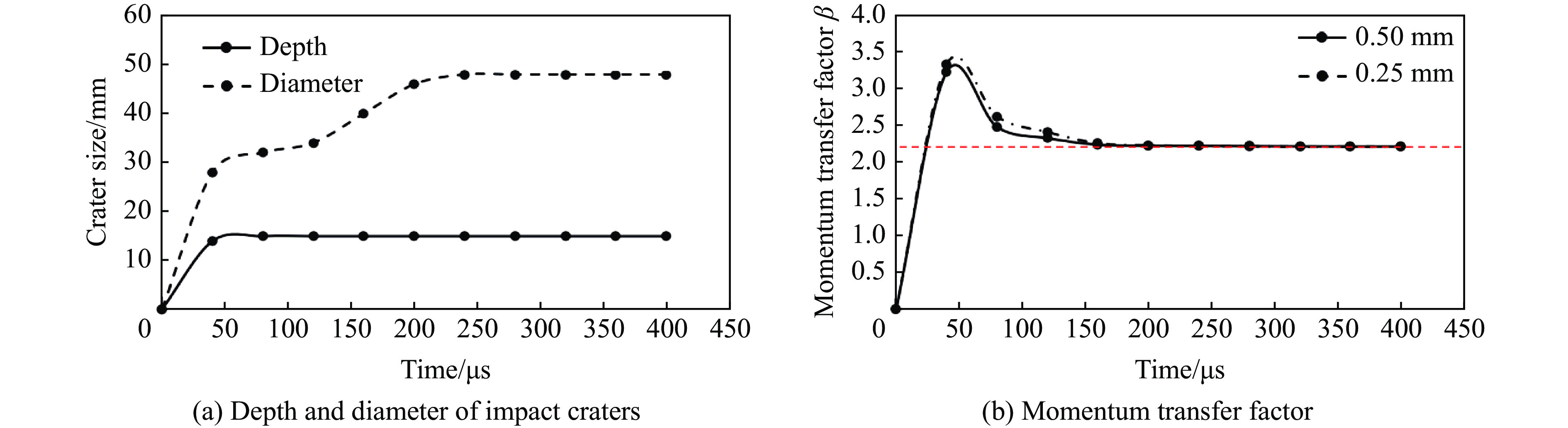 To investigate the evolution of phase structure, dislocation distribution, energy absorption capacity, and impact accumulation effect of high-entropy alloys (HEA) under shock loading, molecular dynamics simulations were employed to systematically analyze the dynamic response behavior of Al0.3CoCrFeNi HEA plate subjected to single and secondary impact load. The results show that under the first impact, the phase structure evolution and energy absorption mode of the plastic region of Al0.3CoCrFeNi HEA plate exhibits significant velocity dependence. As the velocity increases, the proportion of face-centered cubic structure shows a three-stage downward trend, while the disordered structure increases accordingly. Under low velocity impact (0.5-1.0 km/s), energy is mainly absorbed by dislocation network; at medium velocity impact (1.0-2.0 km/s), both dislocations and disordered atoms contribute; under high velocity impact (2.0-3.0 km/s), disordered atoms dominate energy absorption. Within the velocity range of 0.5-0.8 km/s of the rigid sphere, the dislocation line length increases linearly with the impact velocity. However, at higher impact velocities, the dislocation line length decreases due to the limitation of the plate thickness. The stress analysis shows that when the impact velocity increases, both the maximum stress and the boundary stress of the plastic zone exhibit nonlinear variations characterized by a quadratic relationship. Under the secondary impact, the Al0.3CoCrFeNi HEA plate forms a damage zone resembling a trapezoidal shape after impact. The radius of the pit within this damage zone exhibits a quadratic relationship with the impact velocity. Additionally, the minimum affected area resulting from the secondary impact also demonstrates a quadratic relationship with the impact velocity. Regarding impact resistance, as the initial impact velocity increases, the residual velocity following the secondary impact also rises, indicating a reduction in the resistance capability of HEA. At a distance of 10 nm from the impact center, the ballistic limit velocity decreases nonlinearly with increasing initial impact velocity. However, an increase in the secondary impact velocity mitigates the effects induced by the initial impact.